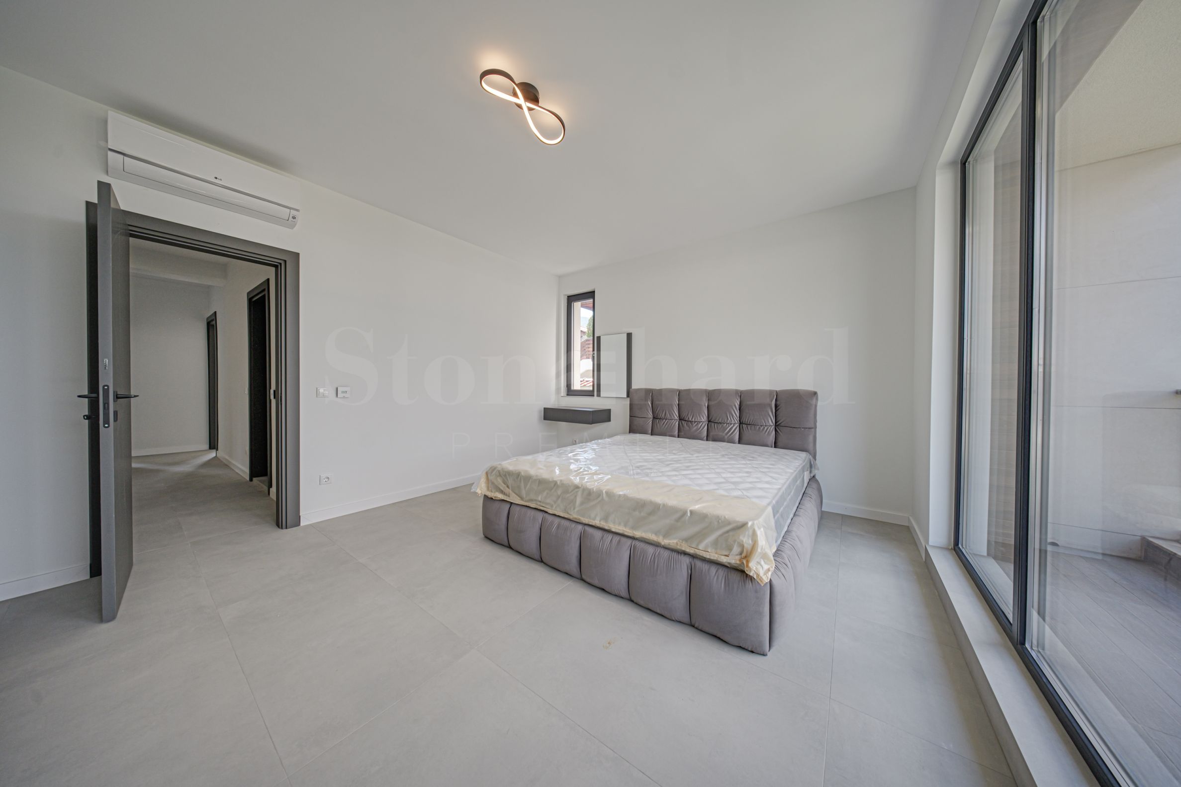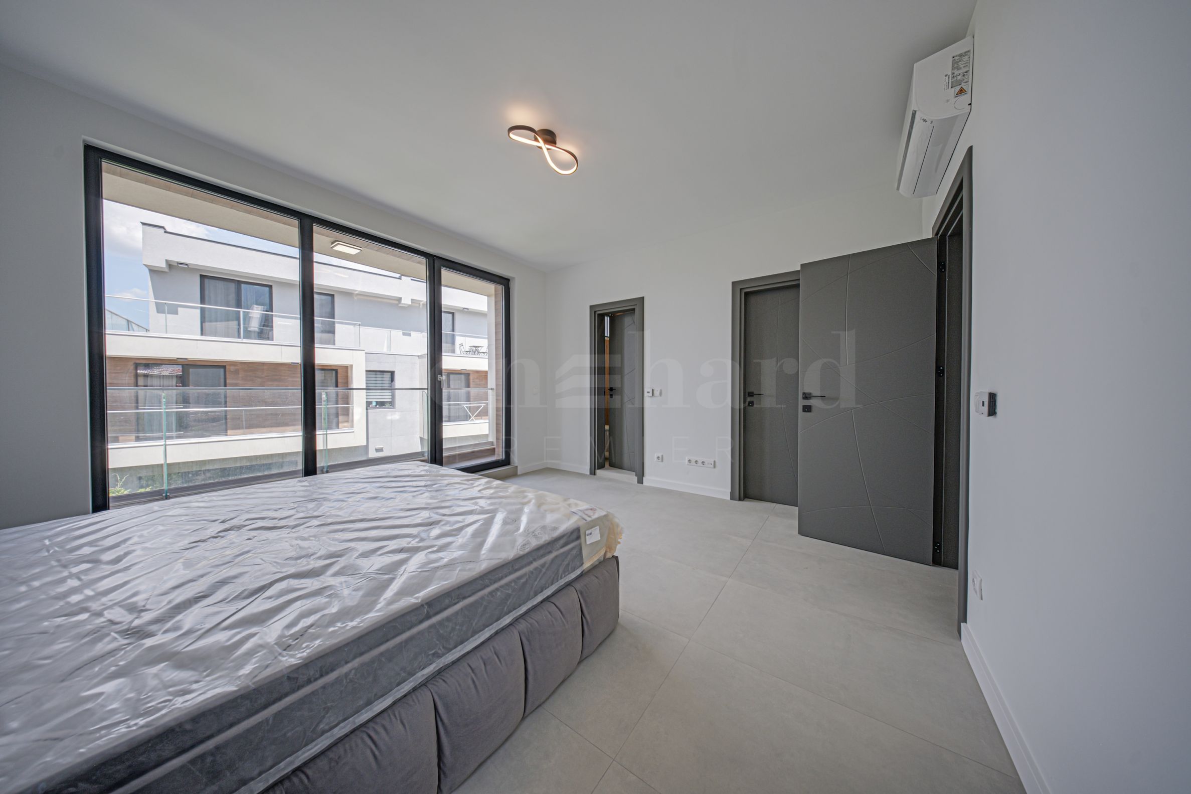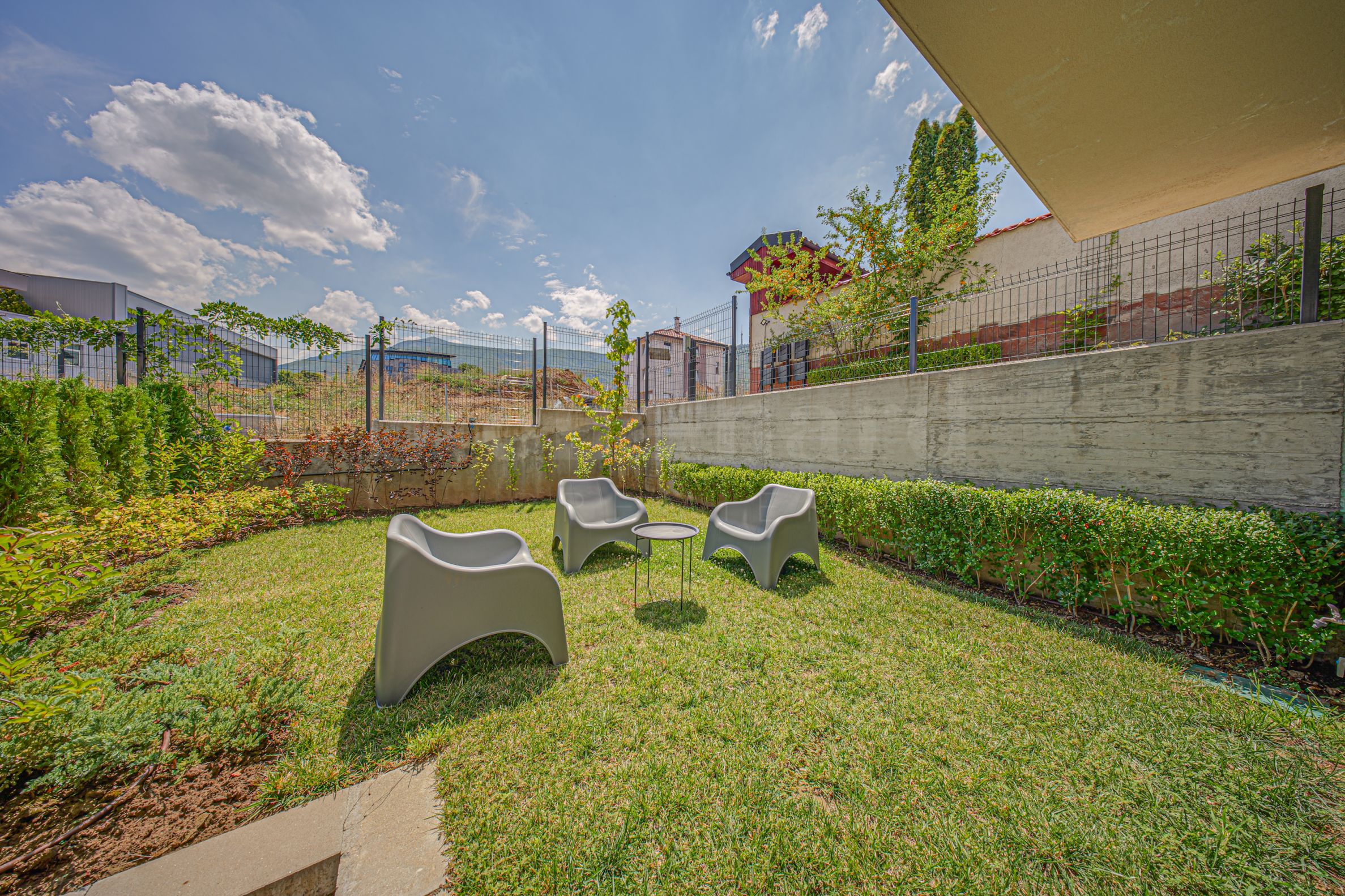 A new house with a yard and views of Vitosha in a gated complex