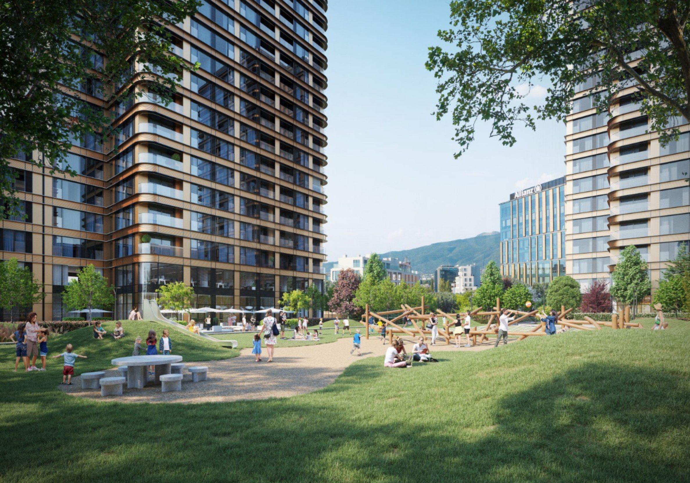 The residential environment is designed with attention to detail - green areas, alleys for walking and sports, separate recreation areas and a children's playground. The underground level is entirely intended for parking, which allows for maximum landscaping and a clean vision of the space.