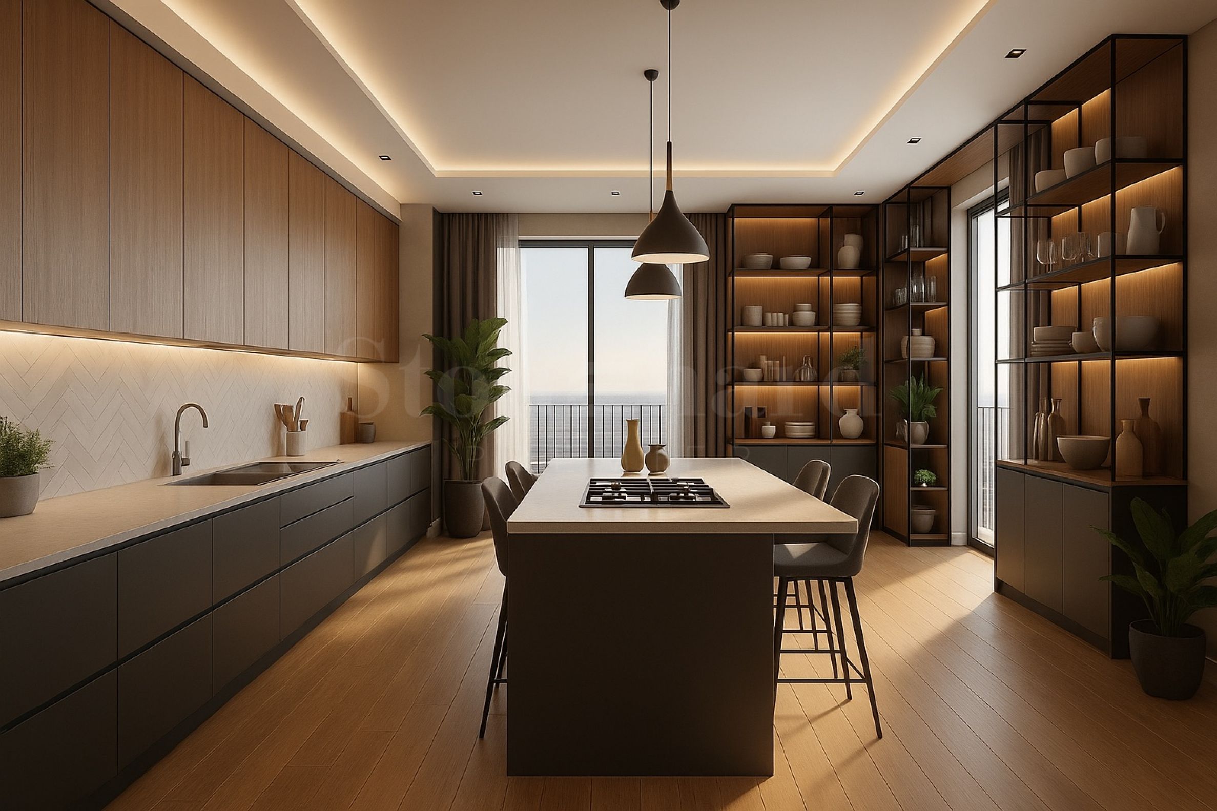 We present a four-room apartment with a total area of 181.95 sq m (net area 158.22 sq m), located on the 16th floor out of 21 in a residential building designed by Atelier Serafimov Architects and E8 London - names with global recognition, combining modern aesthetics and functionality.