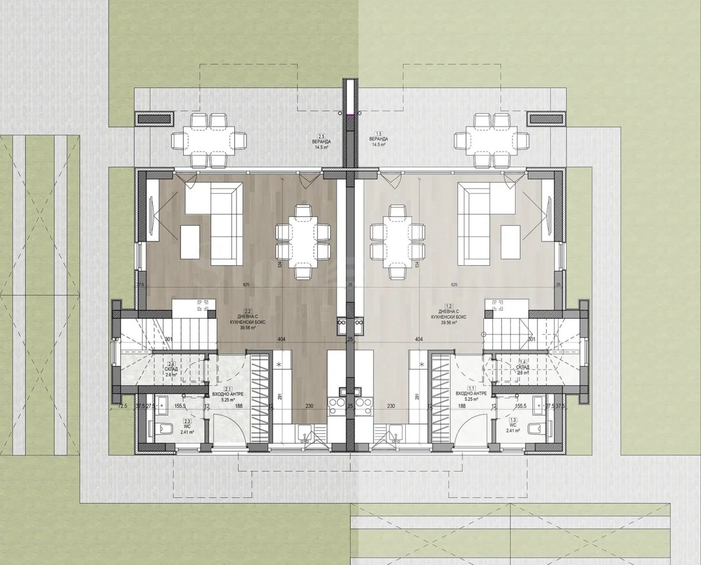 • the joinery is high-quality PVC /for houses of type B, D and E/ and aluminum joinery /for houses;