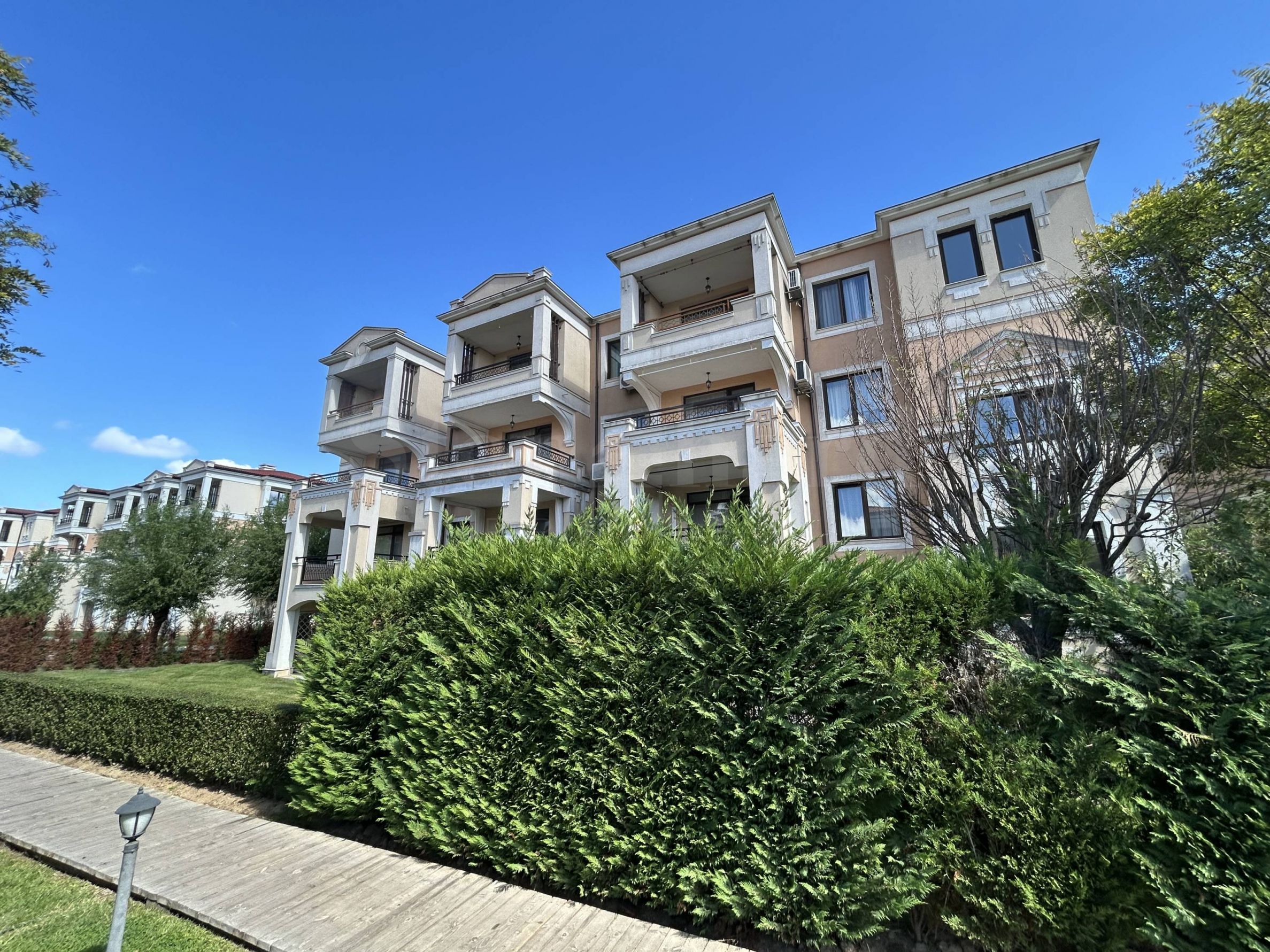 The popular complex has been awarded the prestigious award for luxury construction, architecture and design "LUXURY PROPERTY AWARDS 2016" for "Best Holiday Complex". The premium class complex offers its own, first-class infrastructure for living, family recreation and sports. Built in a Mediterranean style, the complex has numerous water spaces, harmoniously combined with the architecture and the rich landscape, captivating with beauty and giving a feeling of the unity of man and nature.