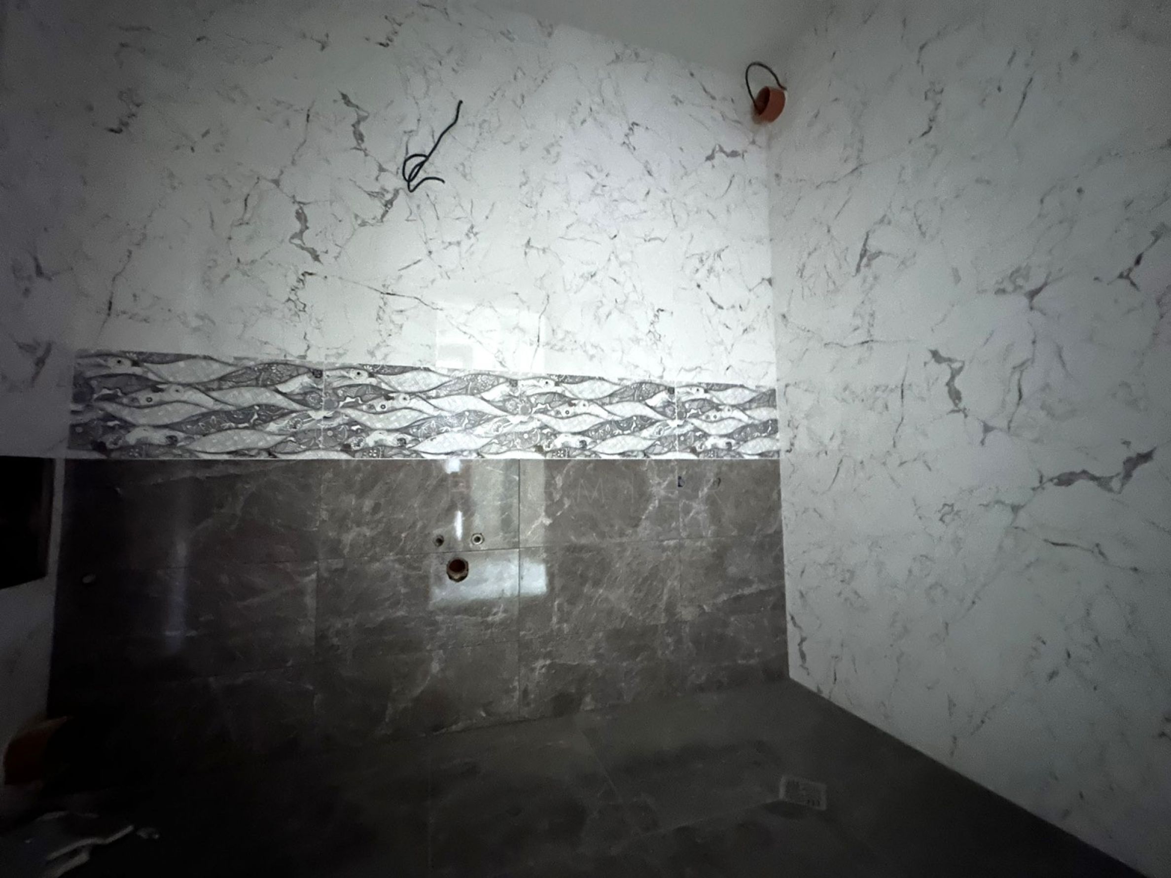 Tiled bathroom, no sanitary facilities;