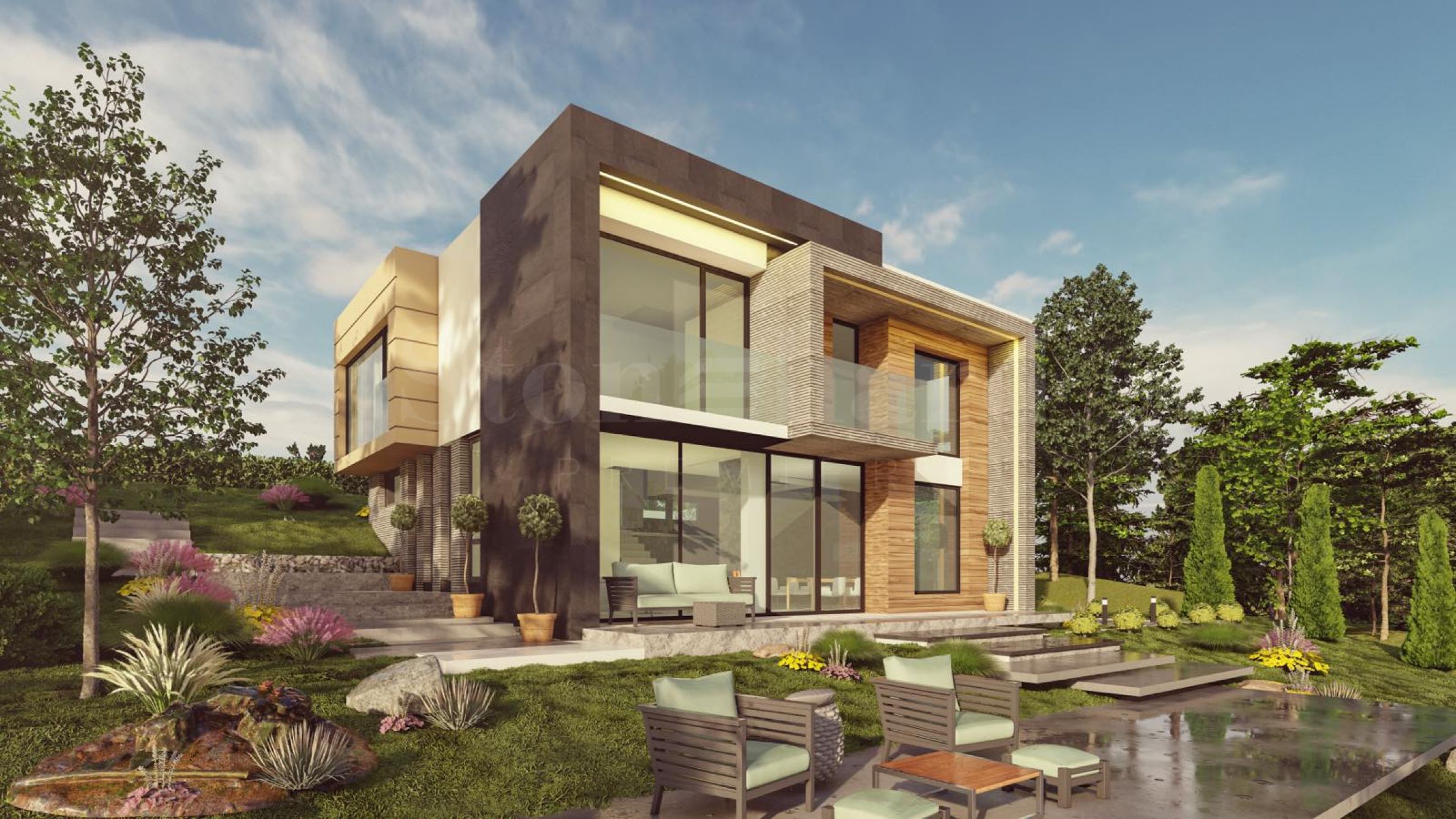 The architectural vision of the complex combines clean lines, natural materials such as stone and wood and carefully selected facade solutions. High-class insulation, Rehau Geneo triple-glazed windows, modern entrance doors and reliable roofing solutions guarantee long-lasting quality and energy efficiency. Heating is provided by a heat pump and underfloor heating, and the interior is rendered and plastered, with the possibility of "turnkey" completion according to an individual project.