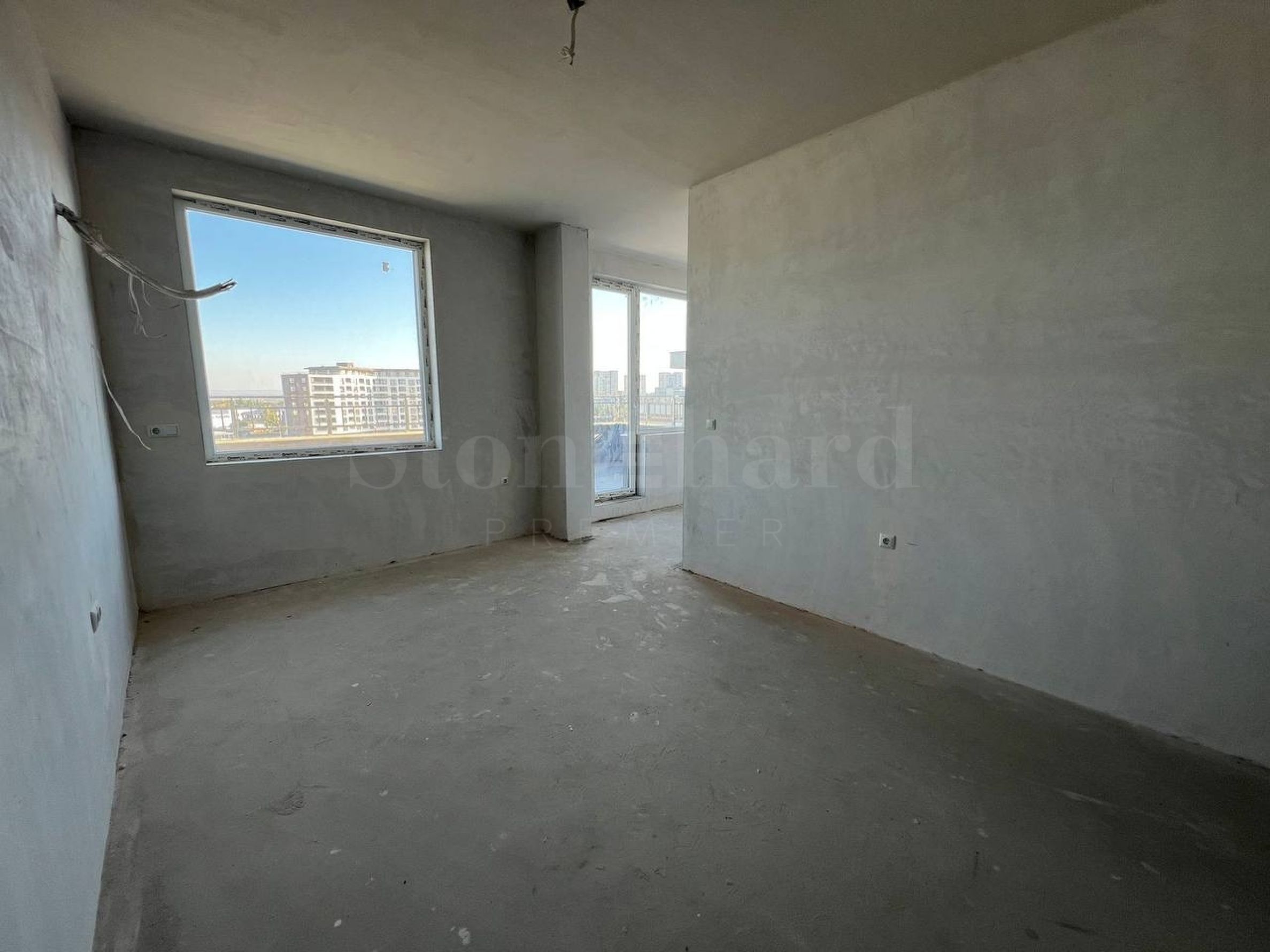 The apartment is being let in a state of completion according to Bulgarian Construction Standards, with plaster and screed. Two apartments are combined and there is a possibility of redevelopment of the premises.
