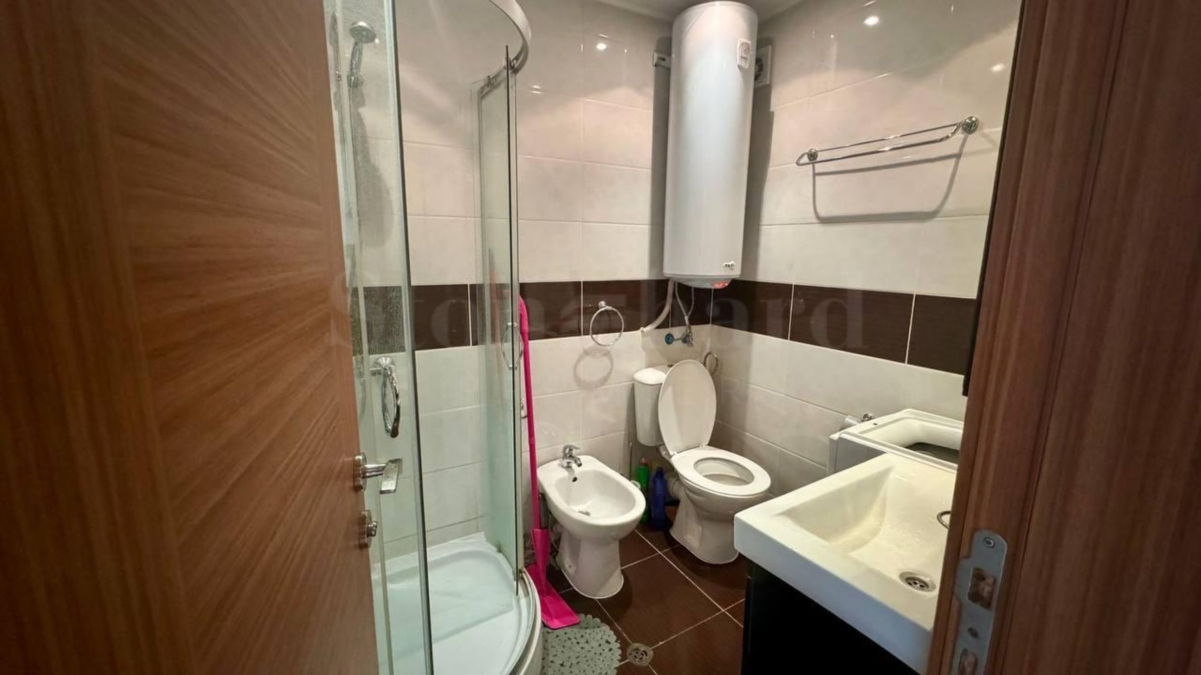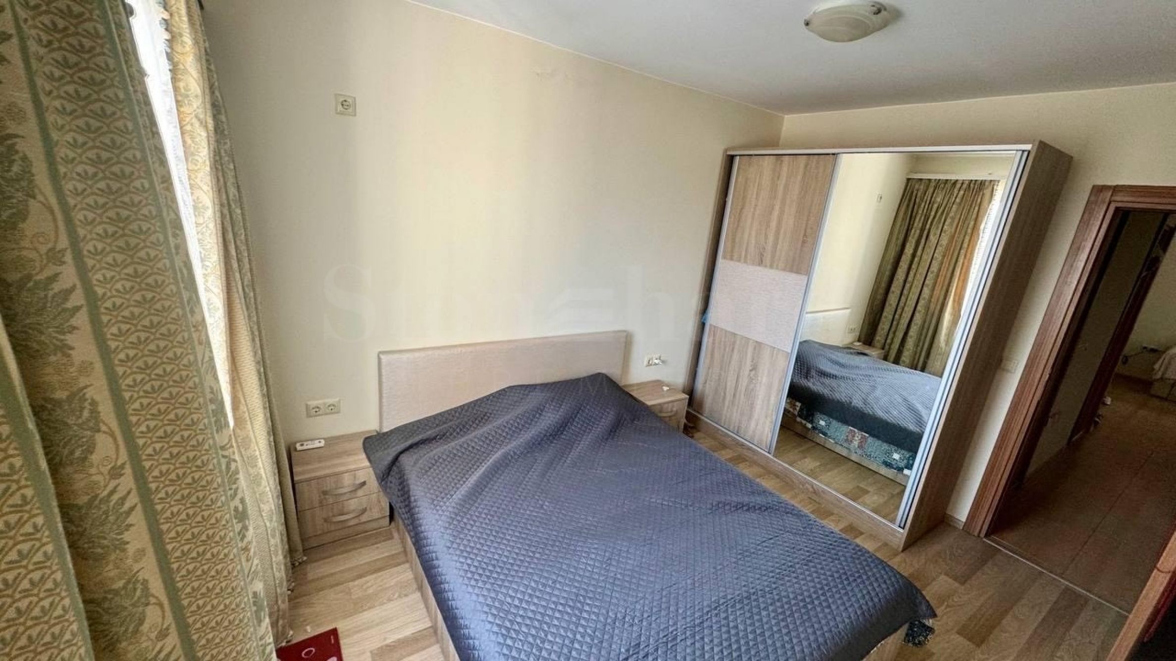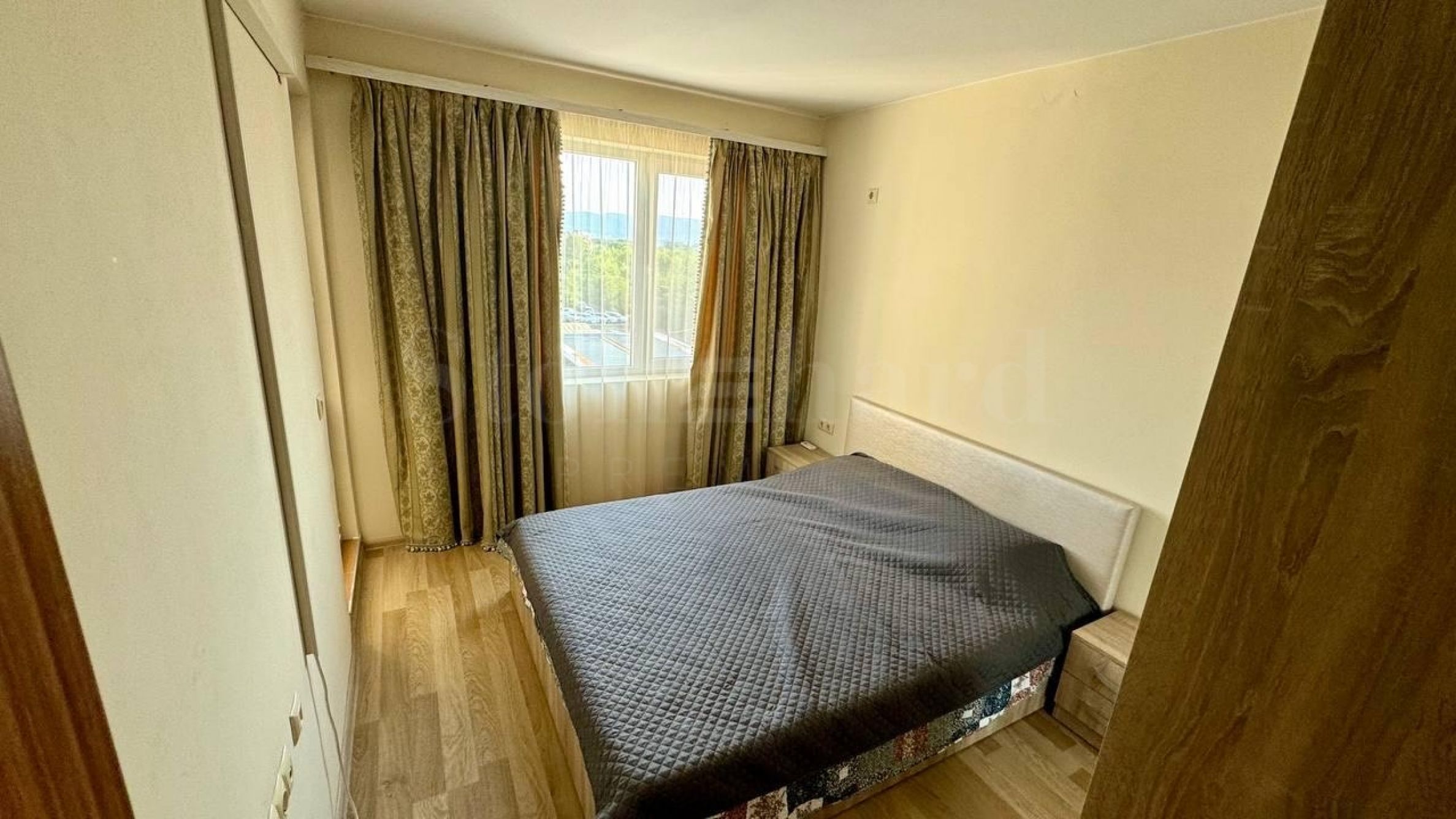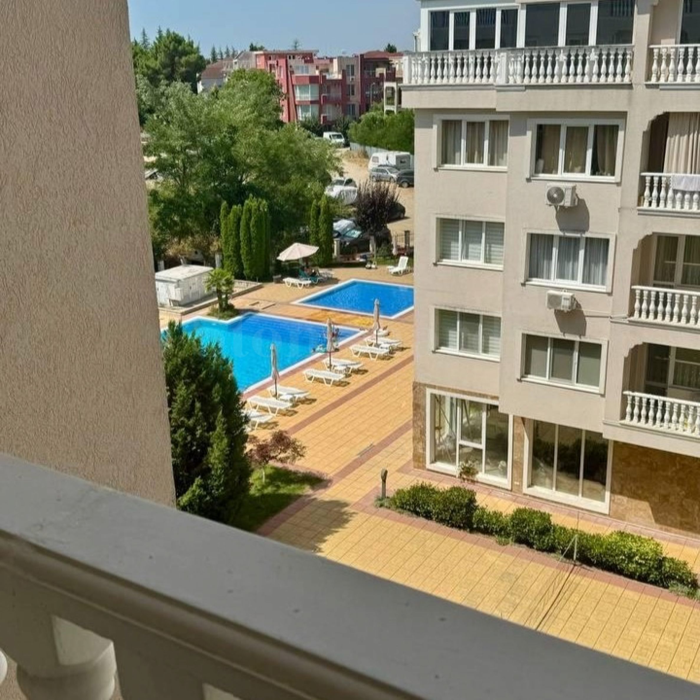 The property with an area of 71.63 sq m is located on the 5th floor with a view of the inner courtyard of the complex, the Sunny Beach resort and Nessebar.