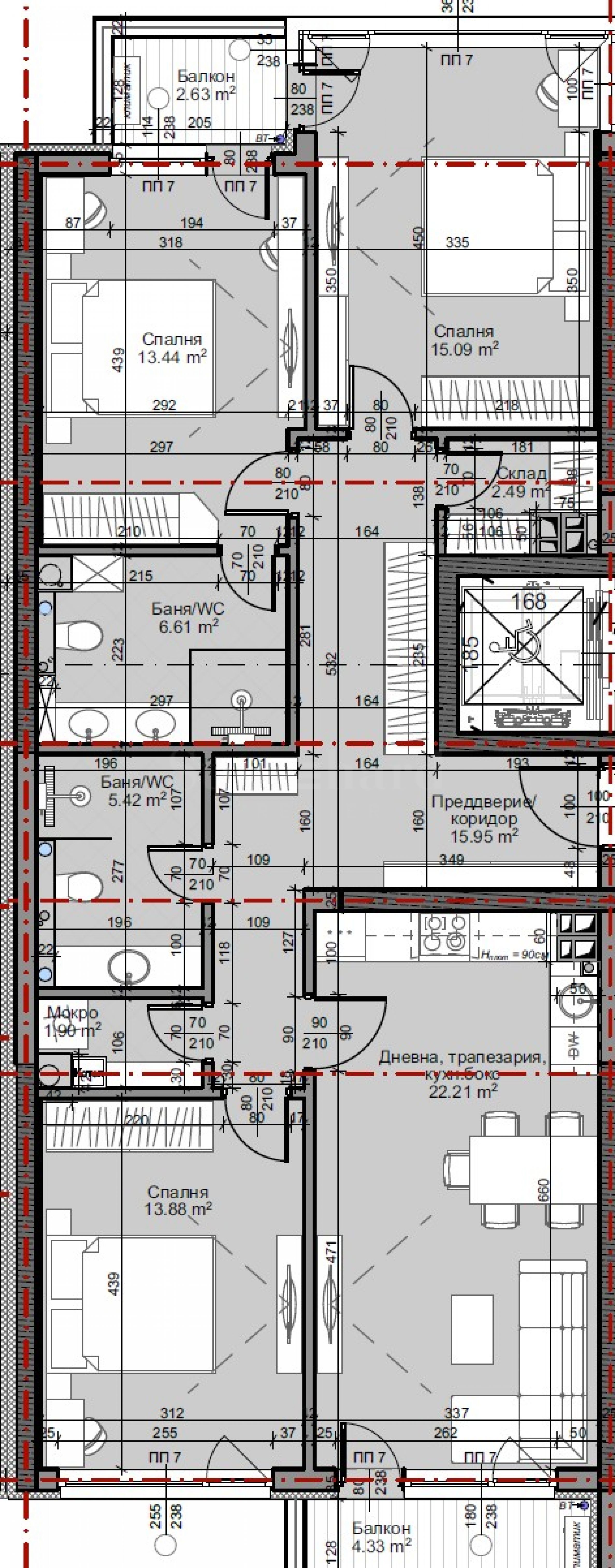 Four-bedroom apartment in a new residential building next to Business Park Sofia and Business Park metro station