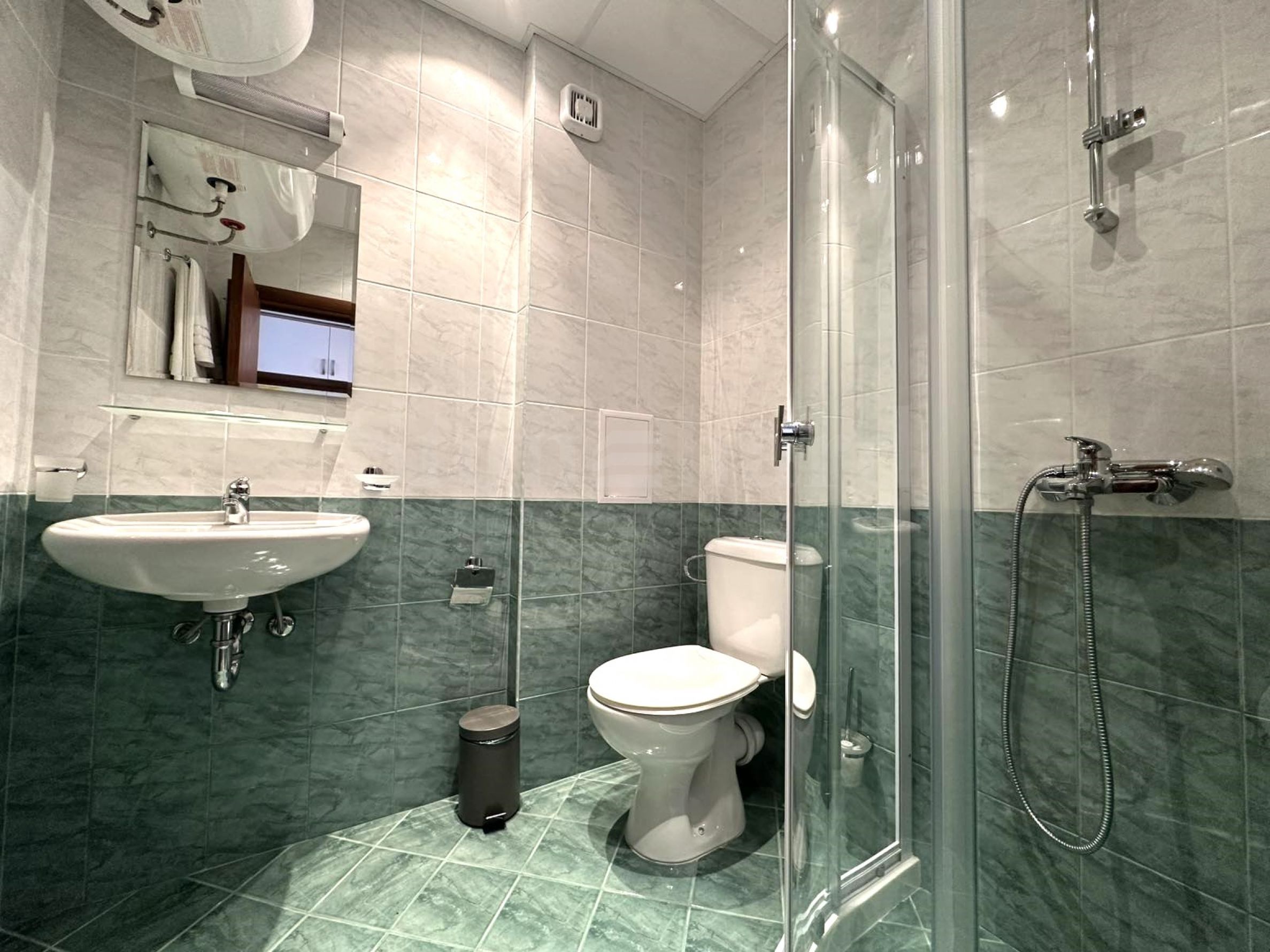 Bathroom with shower/toilet.