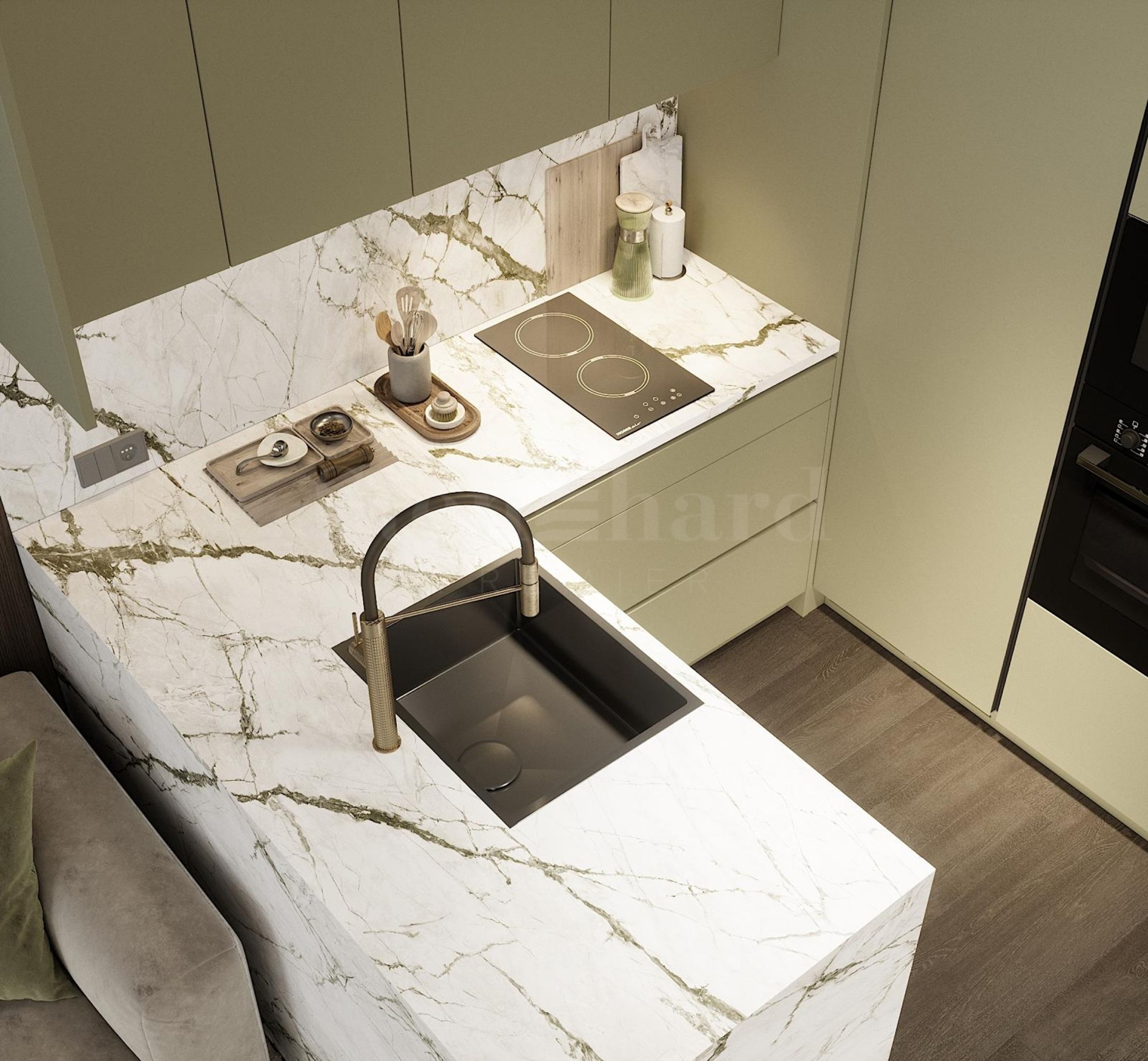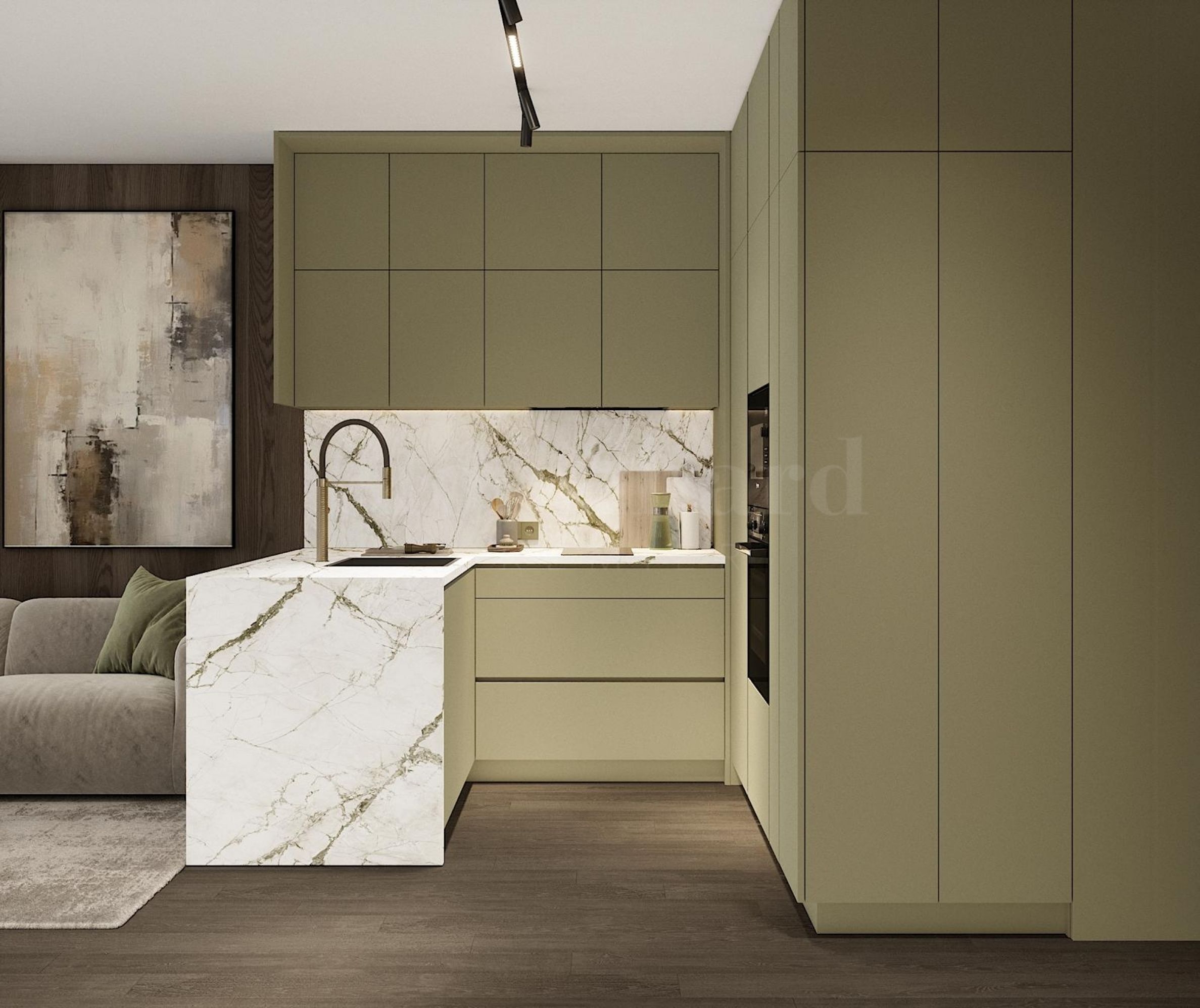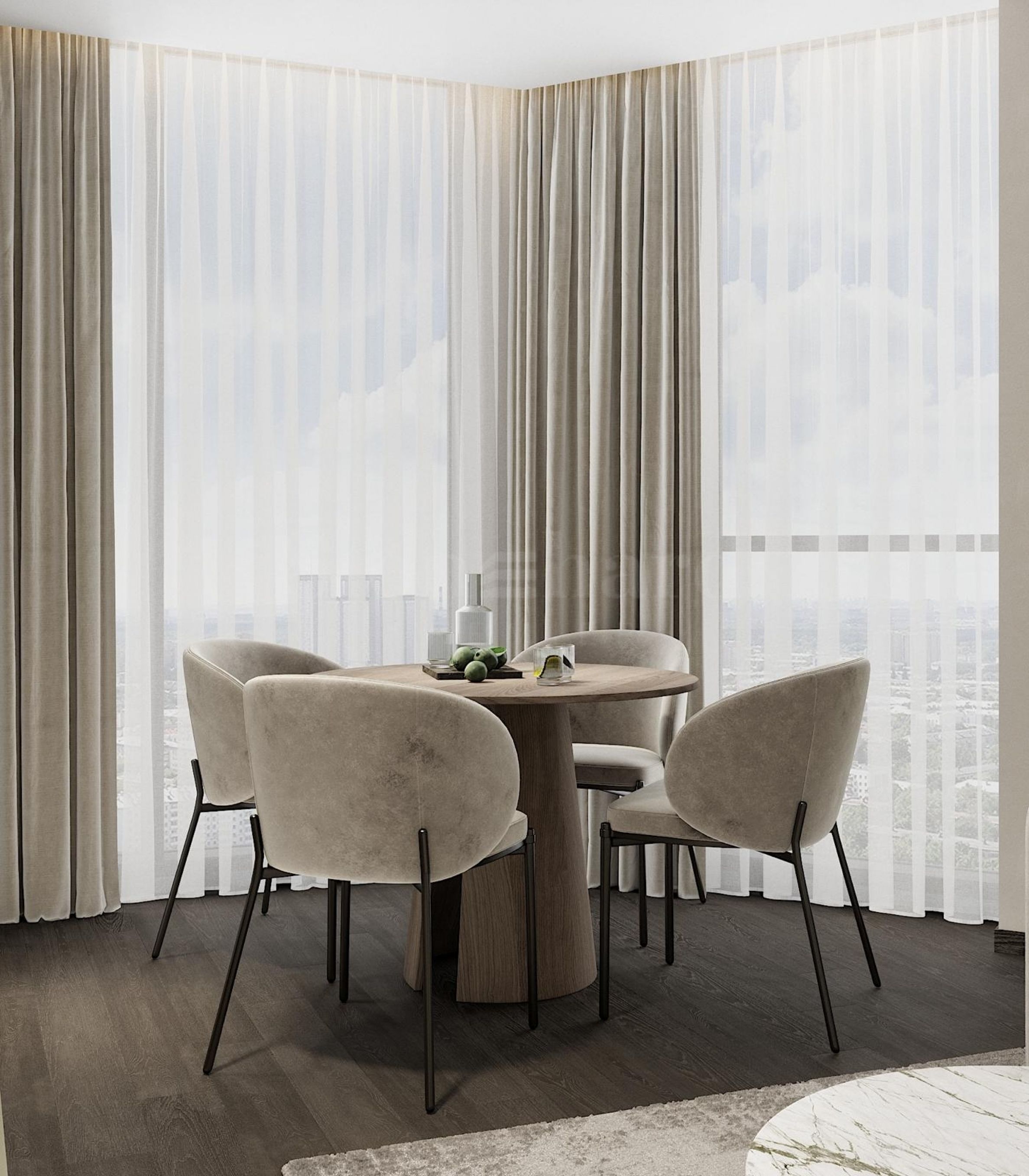 The apartment can be completed to a degree that fully matches the visualizations – including materials, colors, and overall style.
