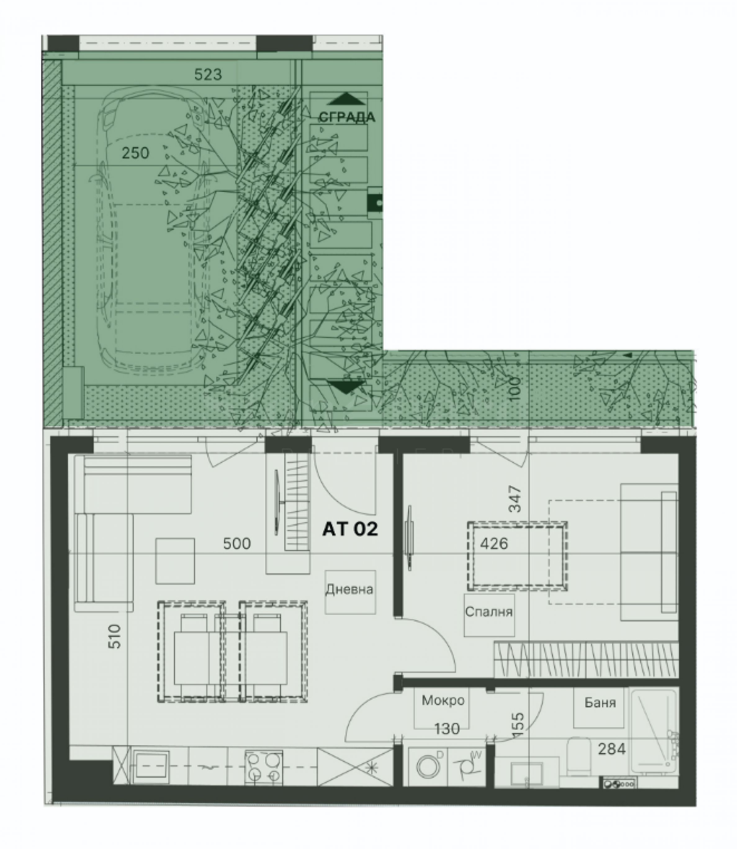 It is issued finished according to Bulgarian Standards, with high-quality plasters and screeds - the basis for your personal interior.