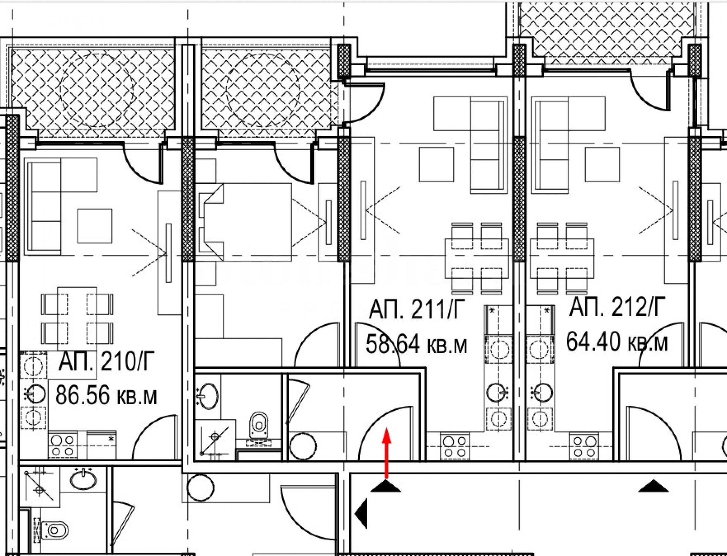 • Entrance doors: armored, veneered MDF;