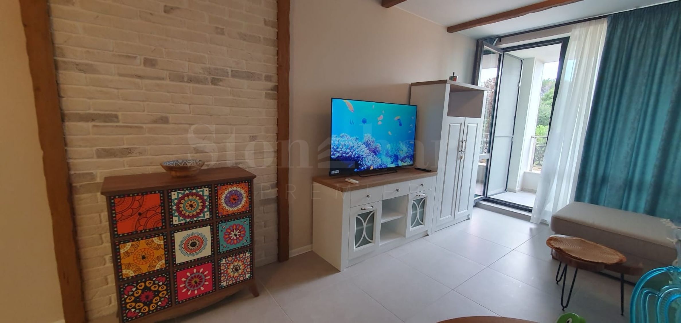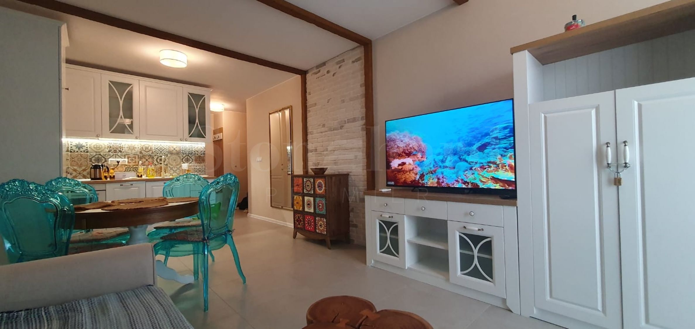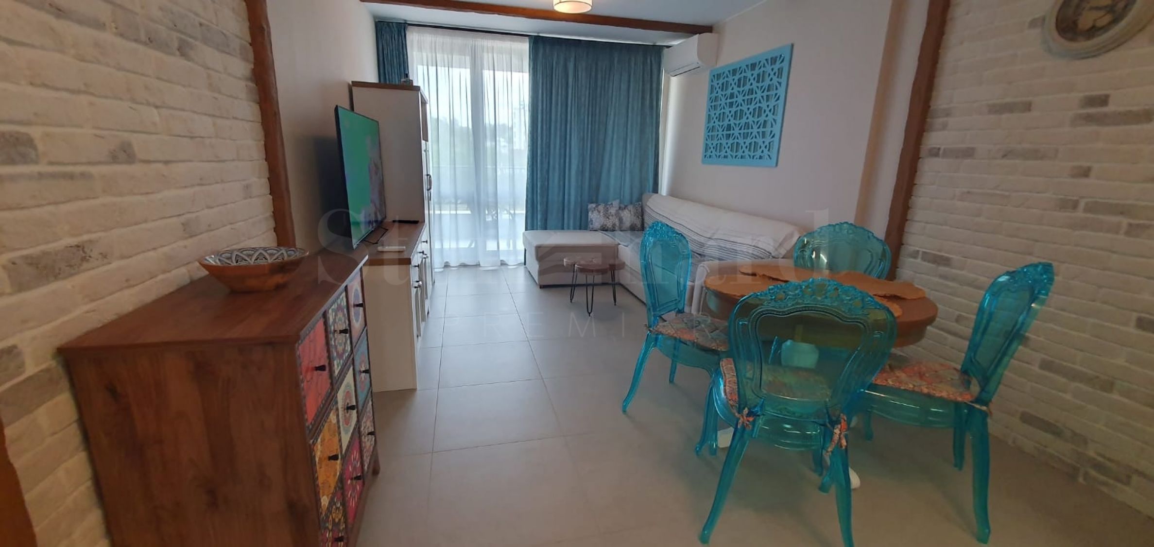 The apartment is newly furnished according to individual design and has not been rented out. It has a washing machine, dishwasher, oven, TV, garden furniture, 2 Daikin air conditioners with heating option. The sanitary ware in the bathroom is Roca and Tres.
