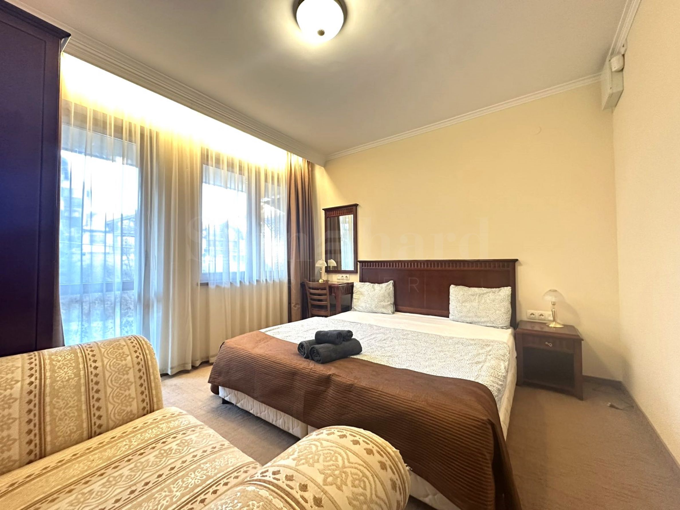 In addition to comfortable and luxurious living conditions, the property enjoys a wonderful location in close proximity to the ski lift and just a 15-minute walk from the center of the beautiful mountain town of Bansko, with its variety of shops, restaurants, taverns and other places for entertainment and recreation, cultural, architectural, historical and beautiful mountain landmarks.
