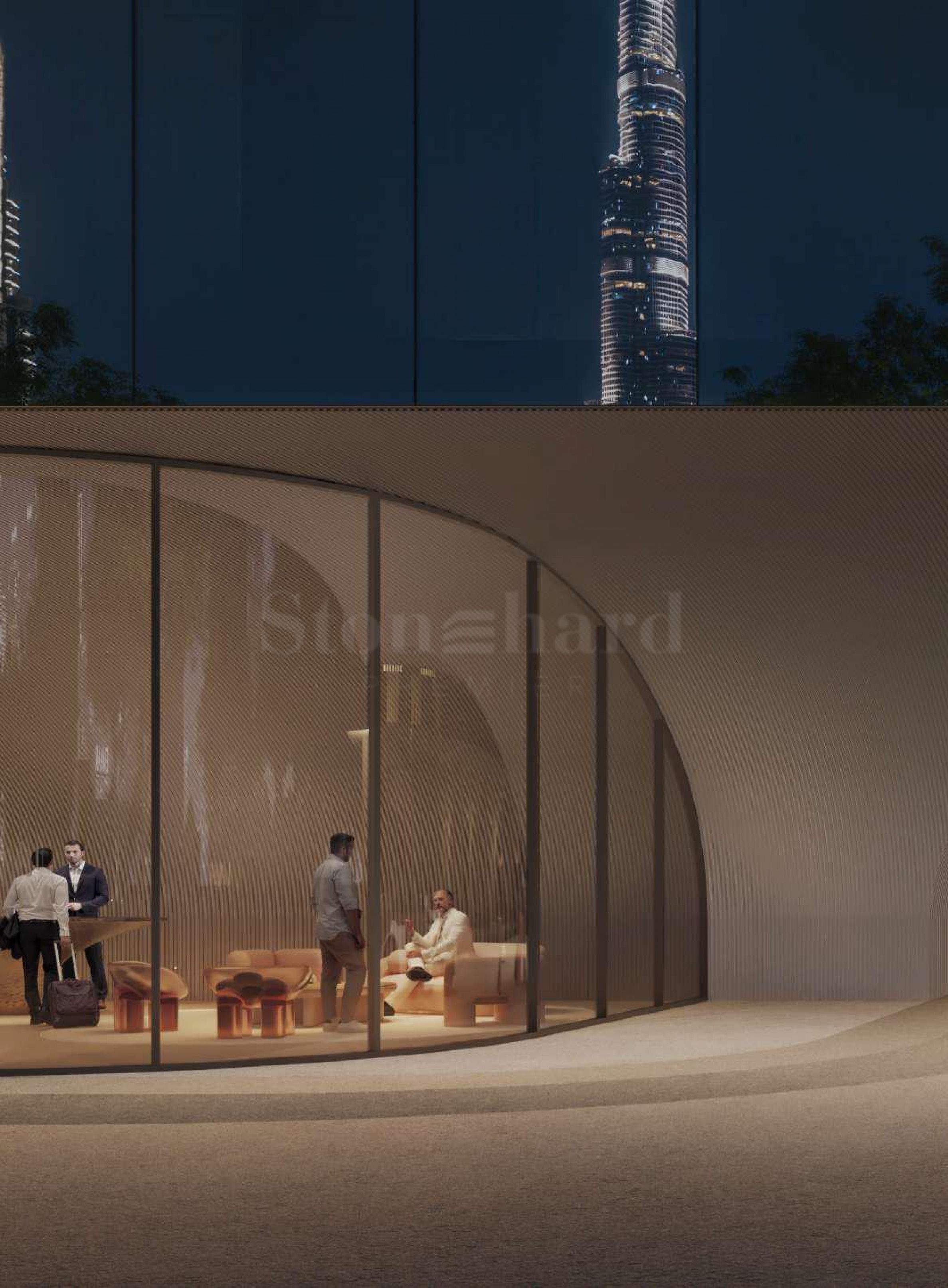 The architectural concept of the tower is envisioned as a powerful expression of contemporary urban life, interpreting the movement, energy, and rhythm of Downtown Dubai through its form, proportions, and silhouette. At street level, the sculpted podium engages in an active dialogue with the city, reflecting its vibrancy while drawing natural light and activity into the interior spaces.