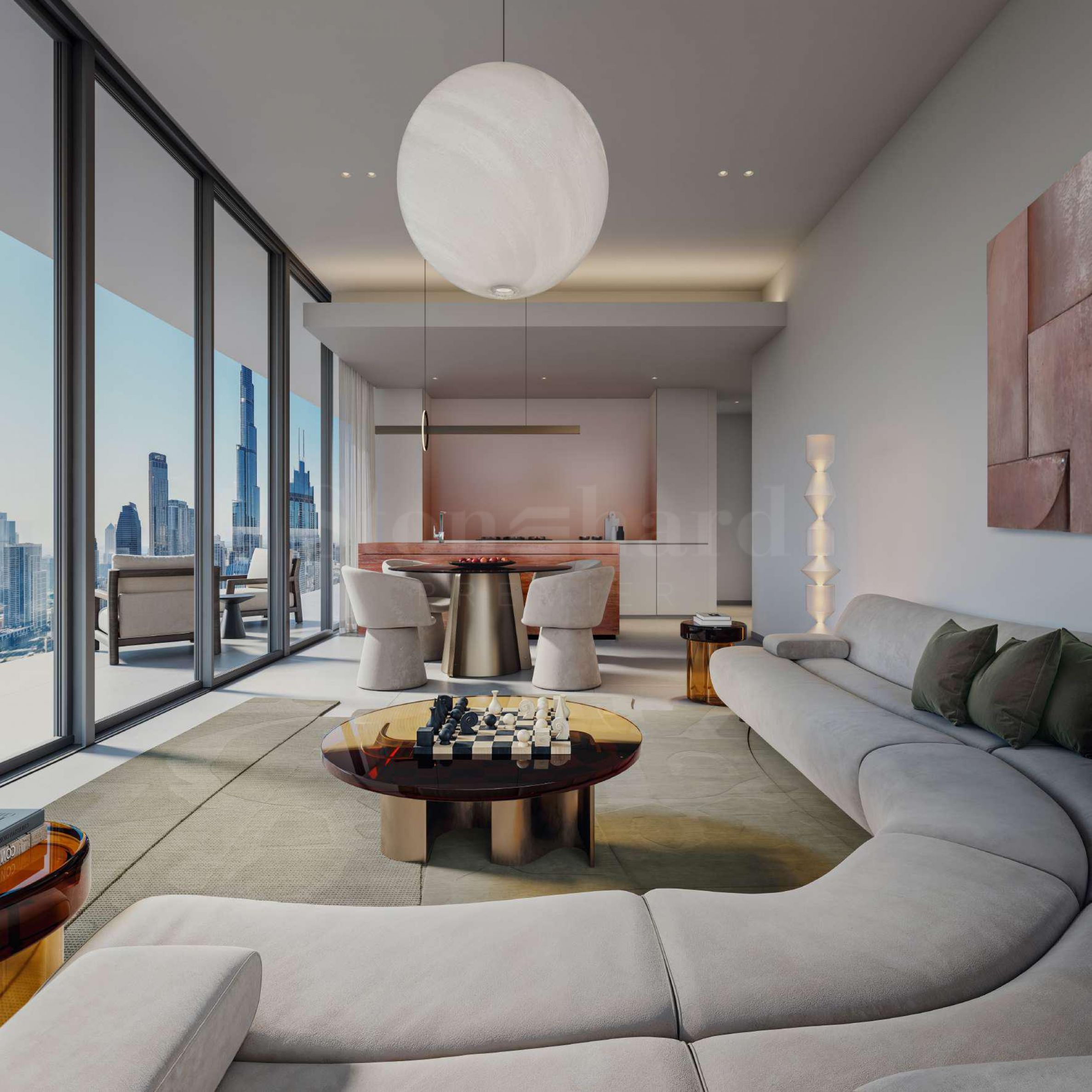 Balconies naturally extend the interior living spaces outdoors, framing views of the skyline and the vibrant pulse of Downtown Dubai, while preserving a sense of privacy and discretion.