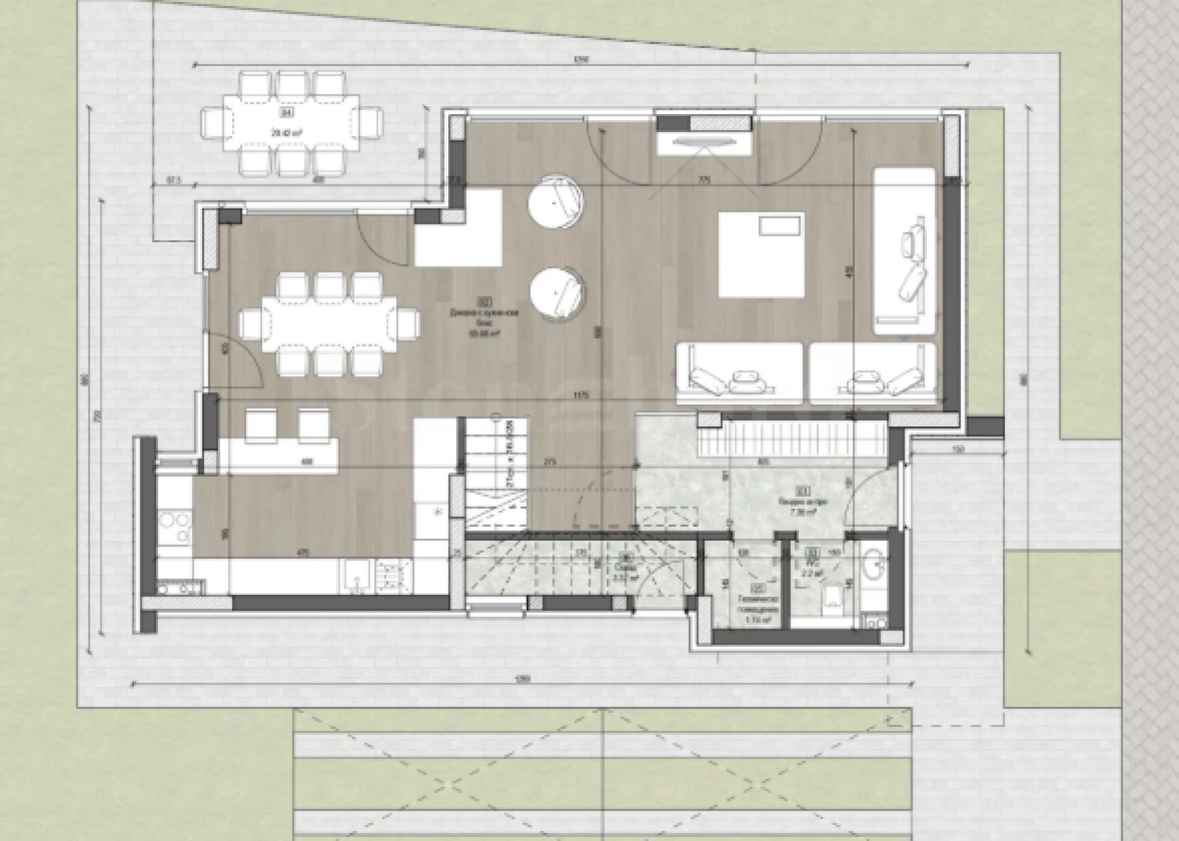 • the building is fully thermally insulated with 12 cm. EPS, 6 cm. XPS for foundations, 15 cm. XPS for roofs;
