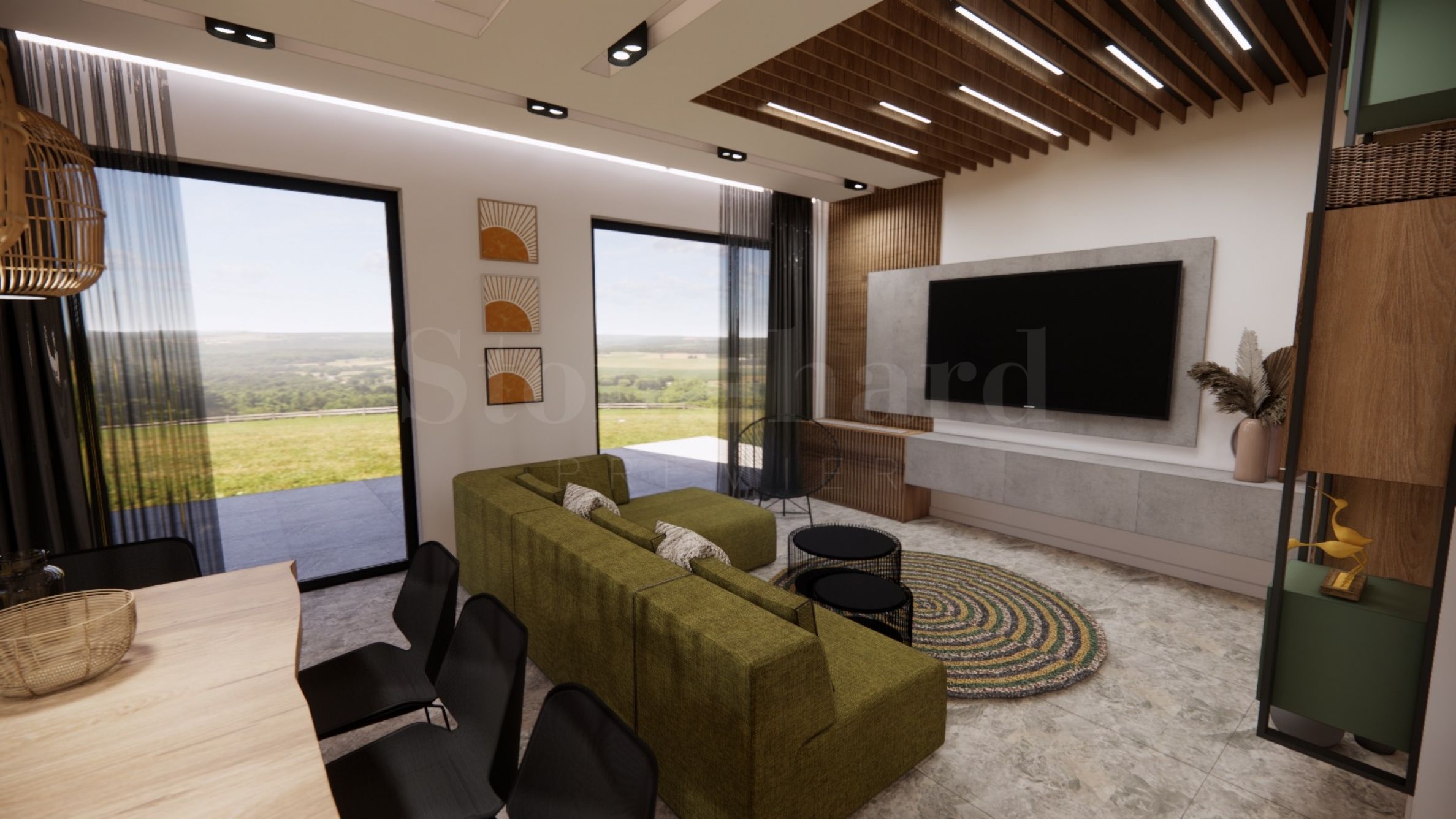 We offer a spacious three-story semi-detached house in the gated Slow Life District complex in Vladaya, just 15 minutes from Sofia, in close proximity to the borders of Vitosha Nature Park. The area is characterized by many sunny days, clean mountain air, greenery, tranquility and beautiful views.