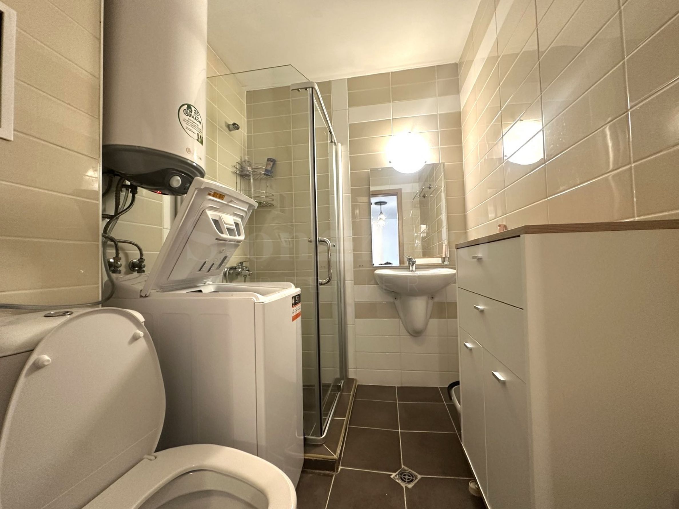 • Bathroom with shower/toilet, smart water heater and washing machine.