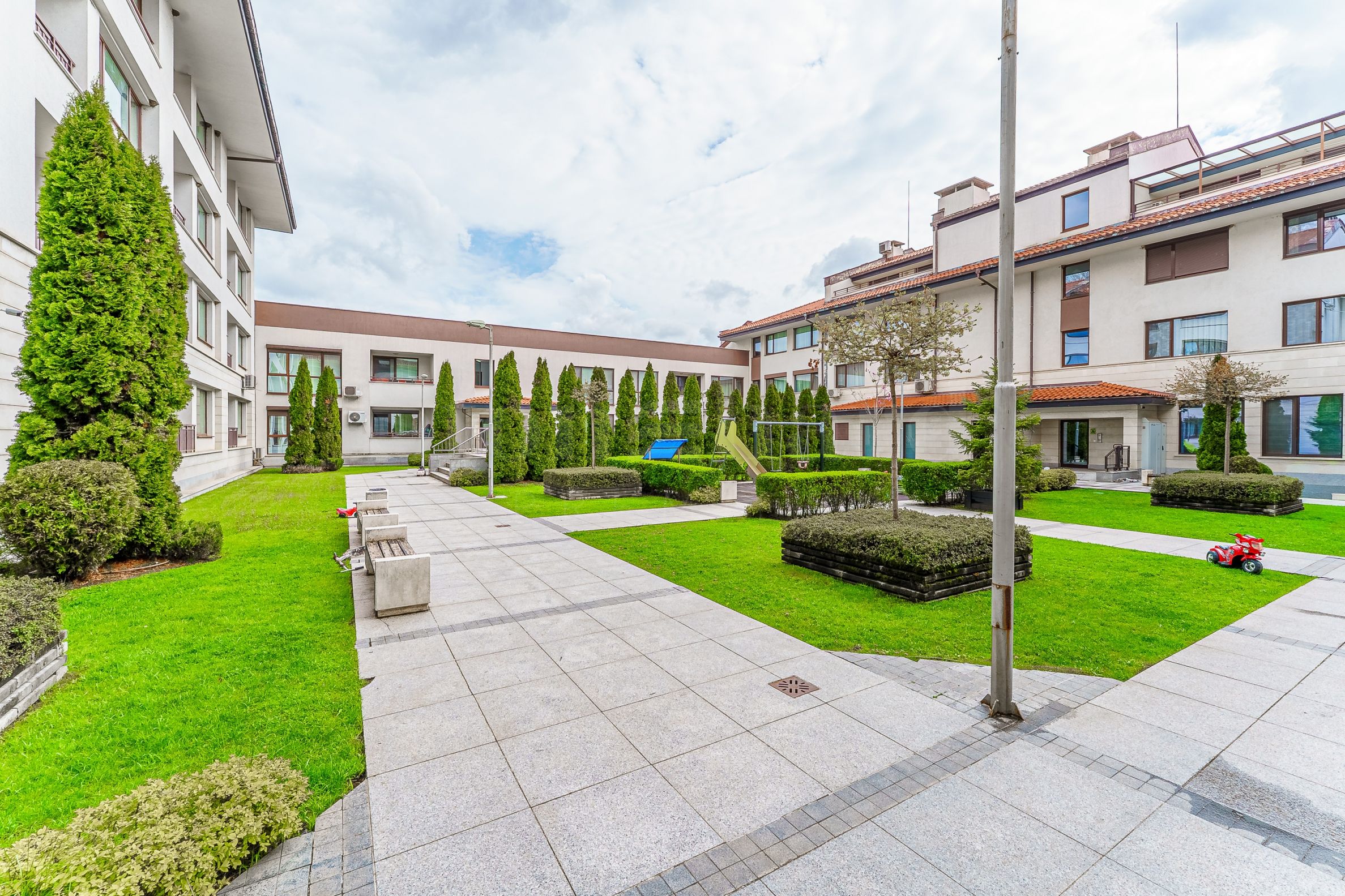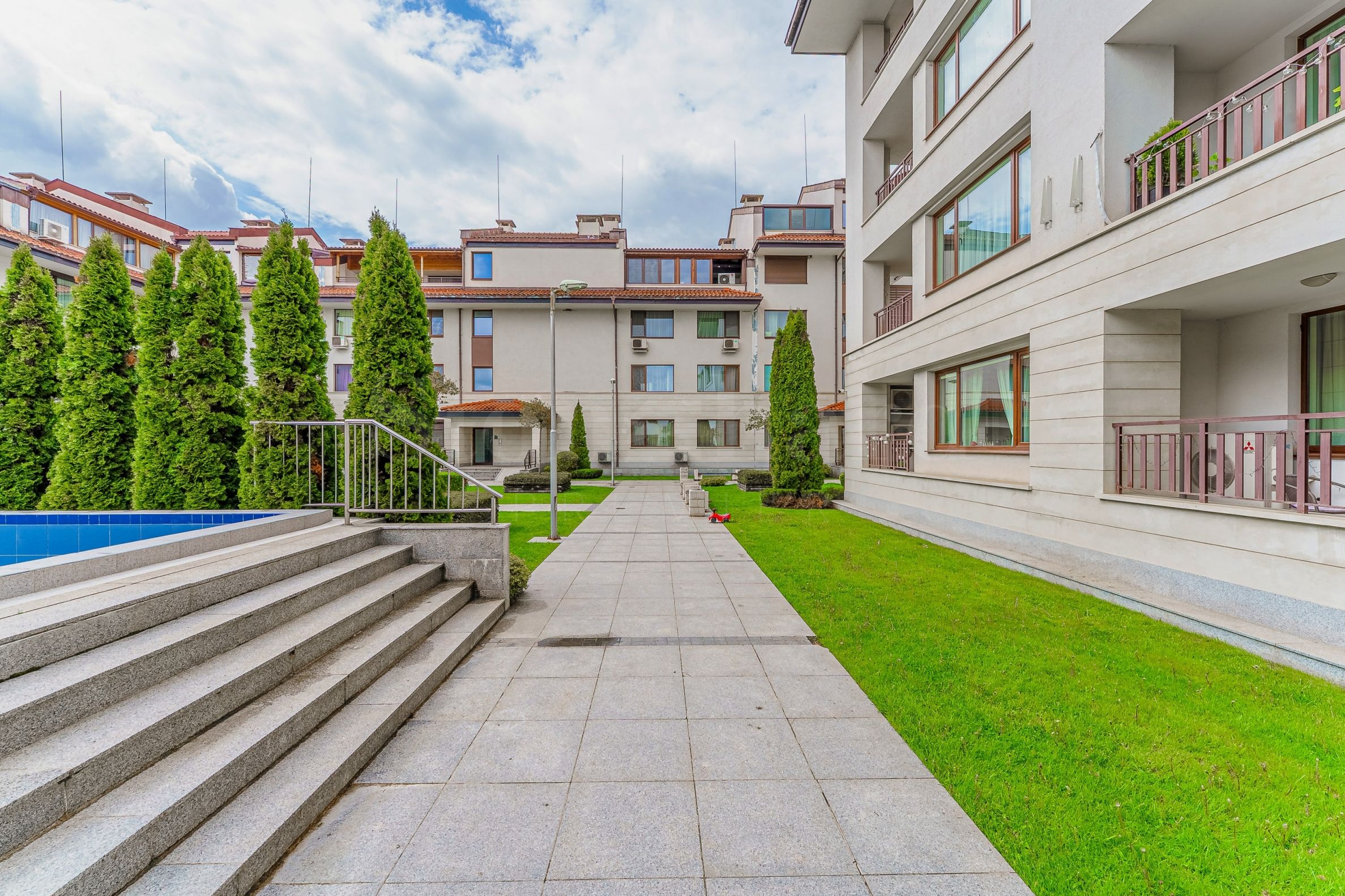 The Belle Valley complex is a project with controlled access, a swimming pool, well-maintained common areas and a peaceful residential environment at the foot of Vitosha Mountain. The location combines silence, greenery and fresh air with quick access to the city and main roads.