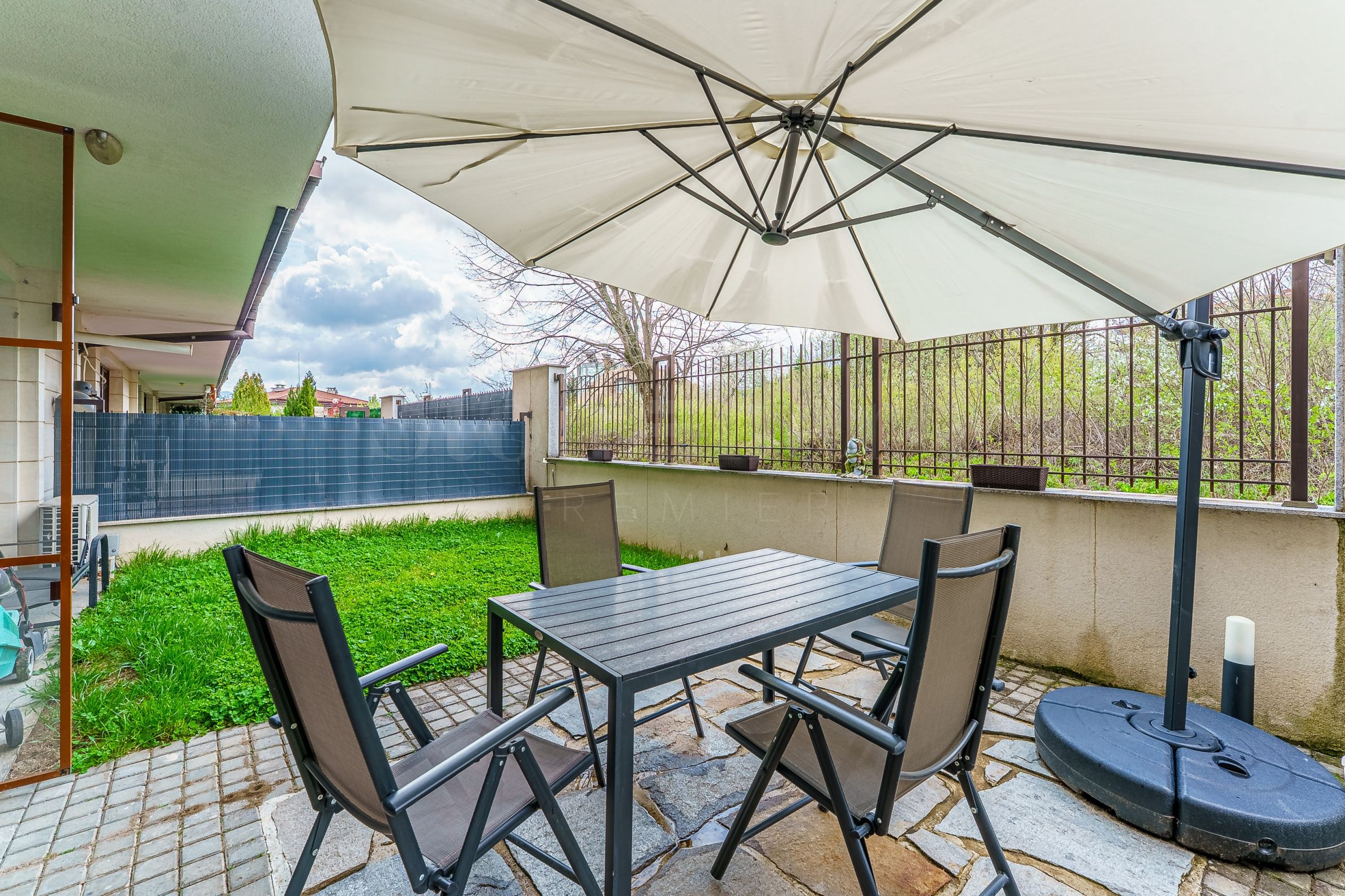 The apartment is located on the ground floor and has a built-up area of 104.86 sq m, as well as a private terrace/yard of 39 sq m, with direct access from the living room. This outdoor space creates real added value - suitable for relaxation, a family environment or working from home.