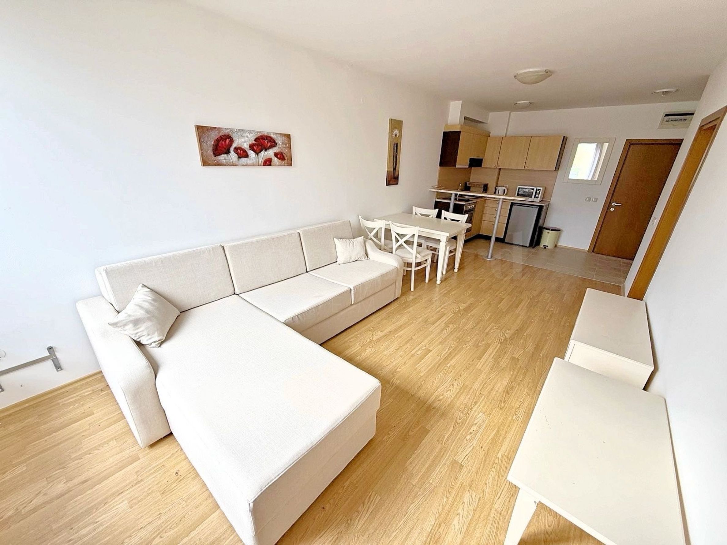 The apartment has: entrance hall, spacious kitchen with living room, one bedroom, terrace, bathroom with bathtub and toilet.