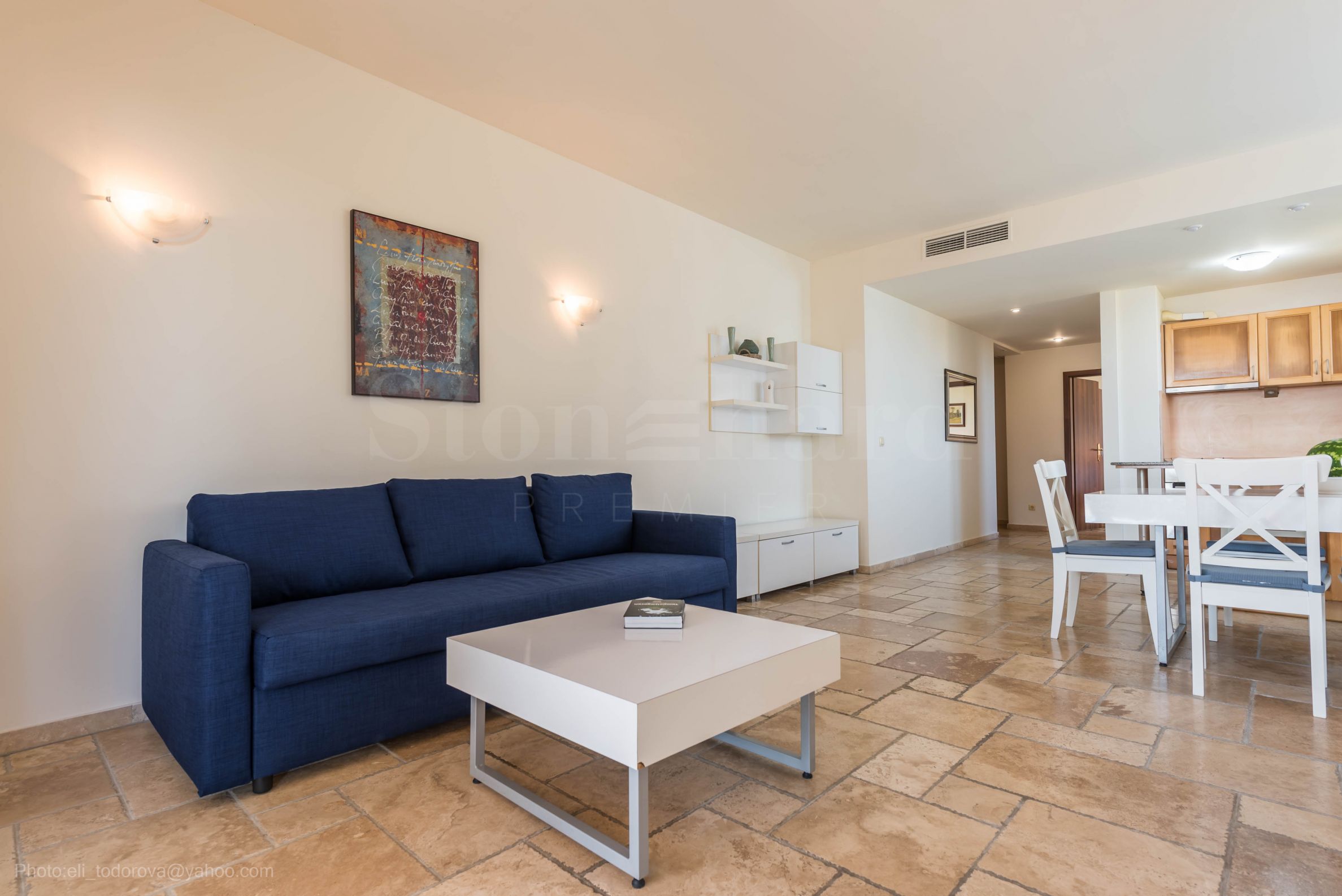 The complex is south-facing and is located in the heart of the so-called Bulgarian Golf Riviera and boasts some of the best views in the area. The apartments overlook the greens of a new 18-hole golf course designed by Gary Player (currently under construction) and Kavarna Bay, which stretches from Cape Kaliakria to Albena and Golden Sands. Gary Player's second golf course (3 km away) is now open and the third golf course in the area (designed by Ian Woosnam) is also complete.