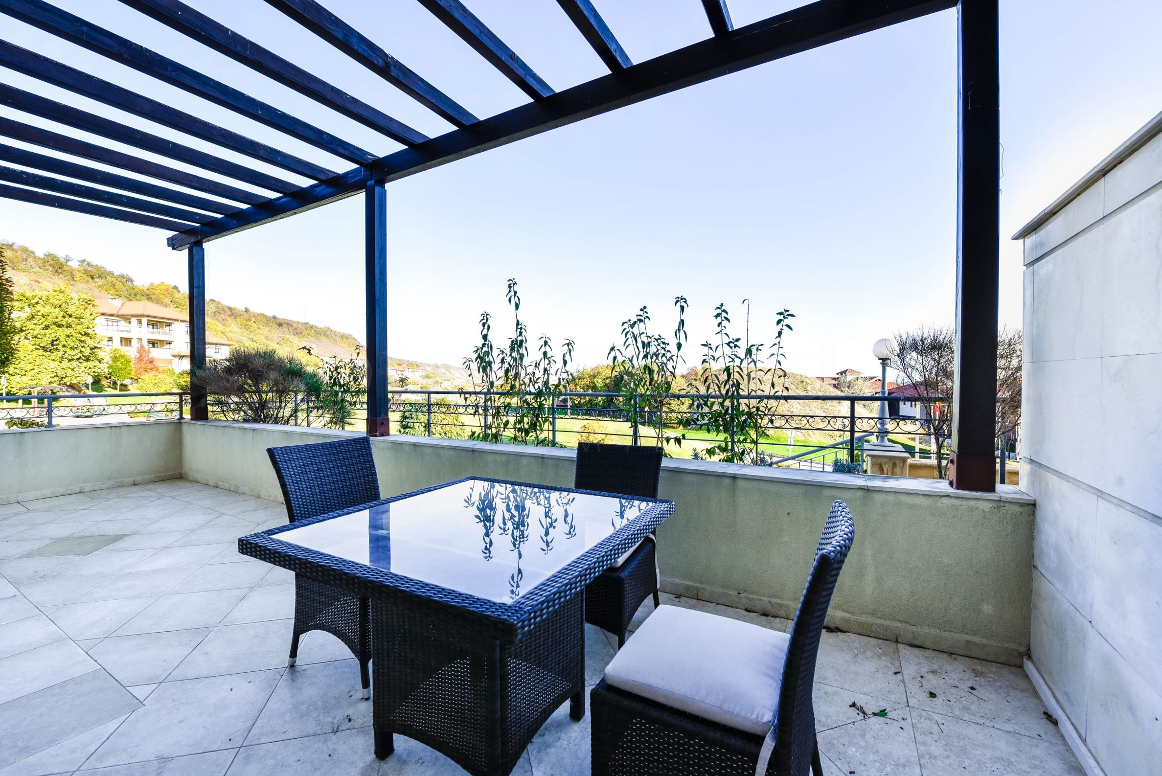 A spacious one-bedroom apartment with a large terrace and a wonderful view