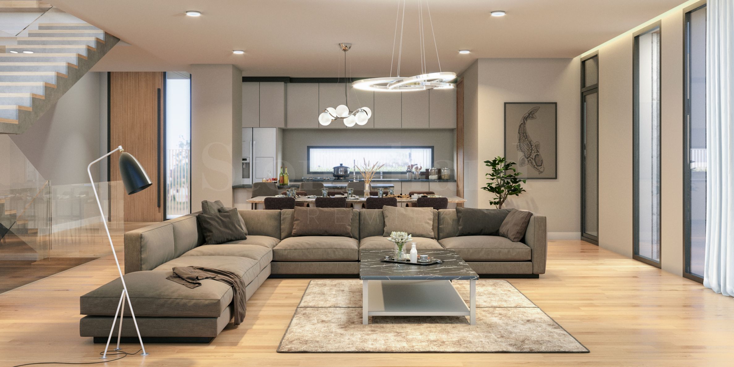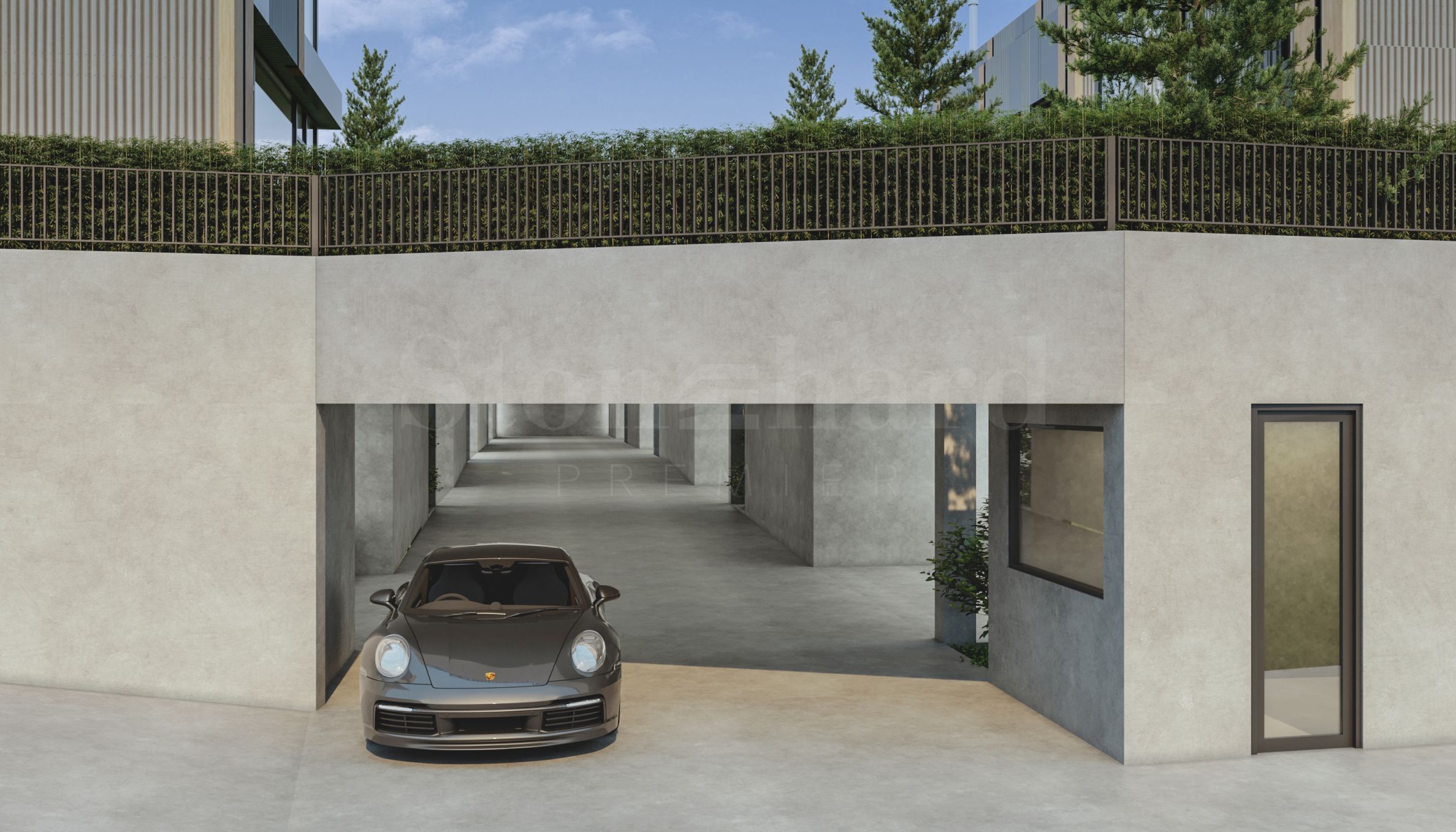 The properties are designed with impressive, high 3.5 m front entrances and 6 m high mezzanines in the living rooms. Each home has a spacious terrace with mountain views.