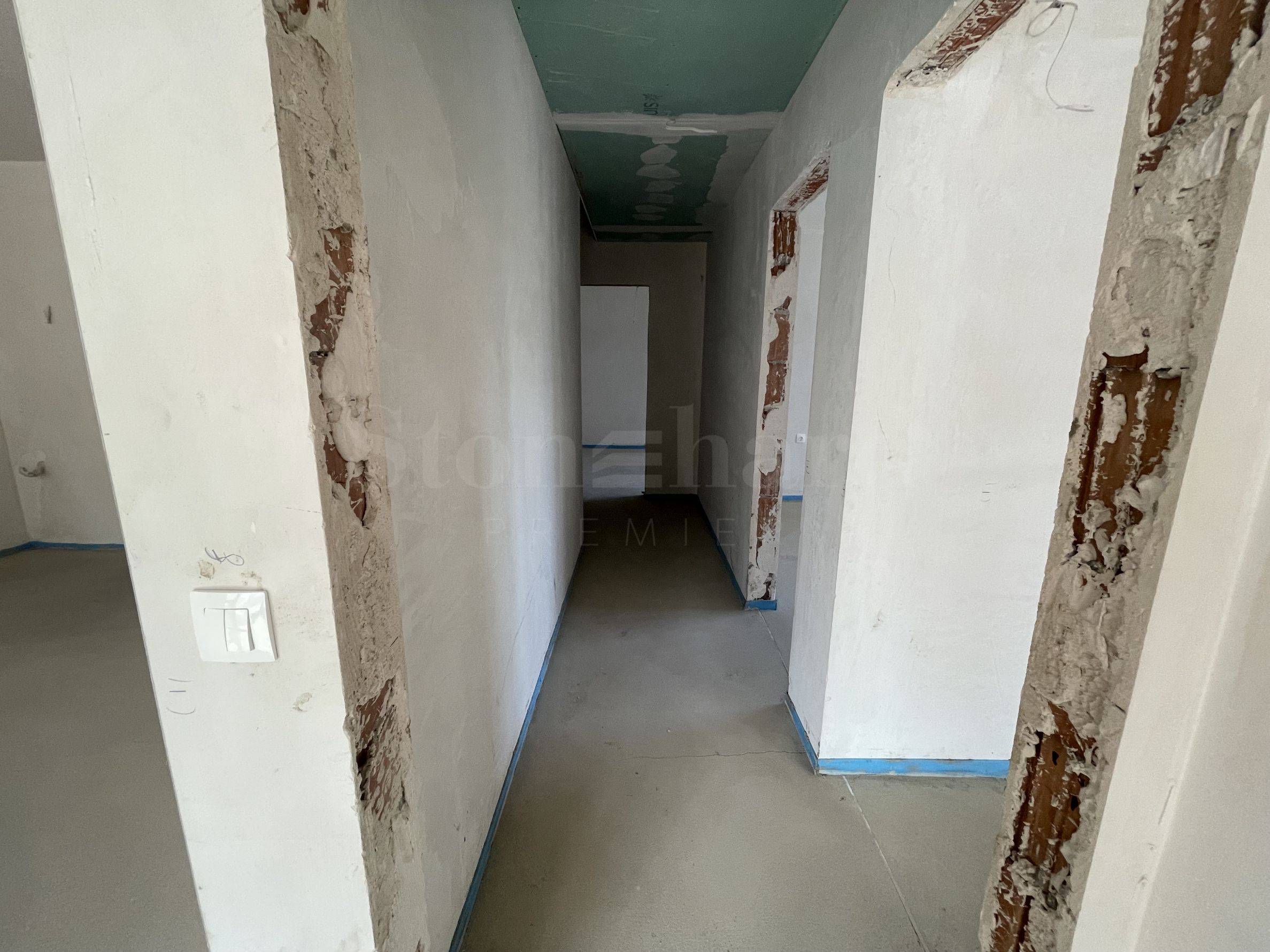The four-room apartment that we present to you is located on the 2nd residential floor (due to displacement - ground floor level) and is offered with its own yard - 21.87 m2. On a total area of 122.61 m2 (net area: 143.66 m2 + common parts: 21.05 m2) are distributed:
