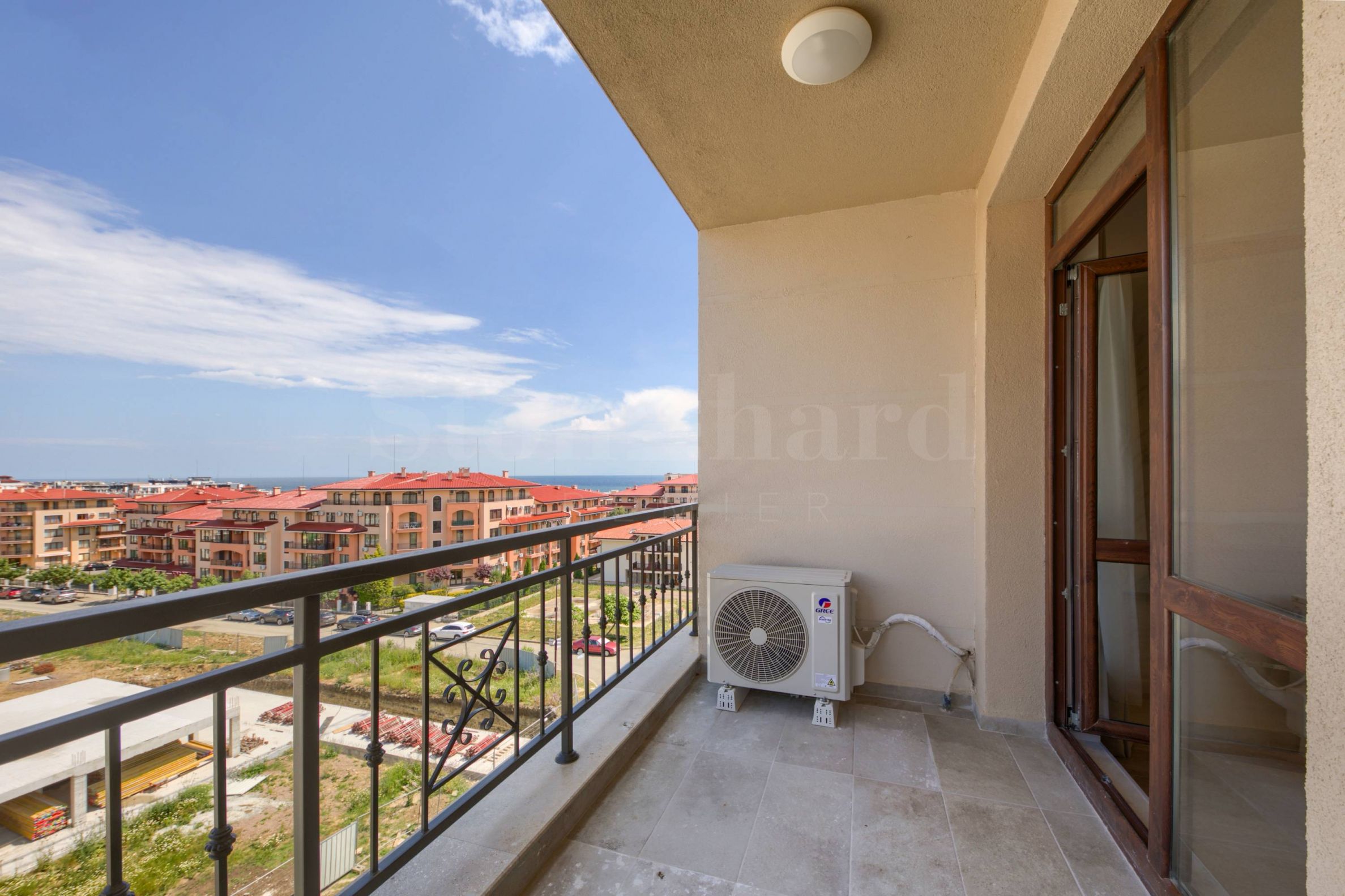 Clădirile D și E sunt proiectate pe 6 niveluri, cu câte 72 de apartamente distribuite în fiecare, de tipurile - garsoniere, apartamente cu un dormitor, apartamente cu două dormitoare și apartamente tip maisonette. Proprietățile au amenajări funcționale și o varietate de vederi spre piscină, grădina complexului, dealuri și mare. Au facturi separate la apă și electricitate.