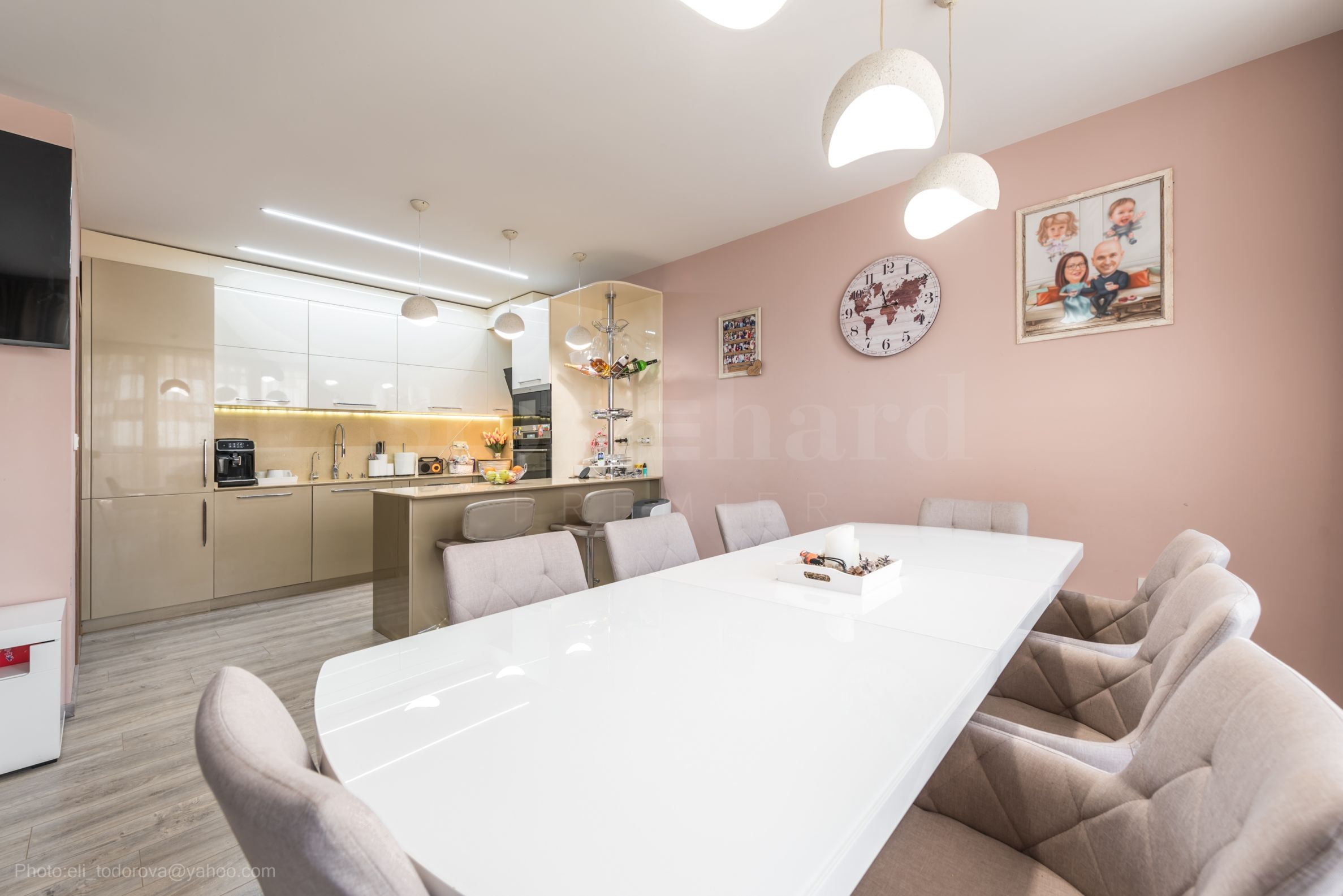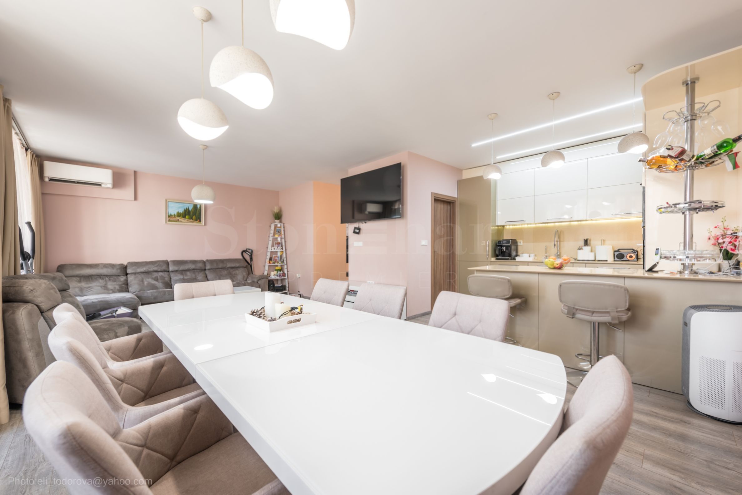 living spațios cu bucătărie deschisă;