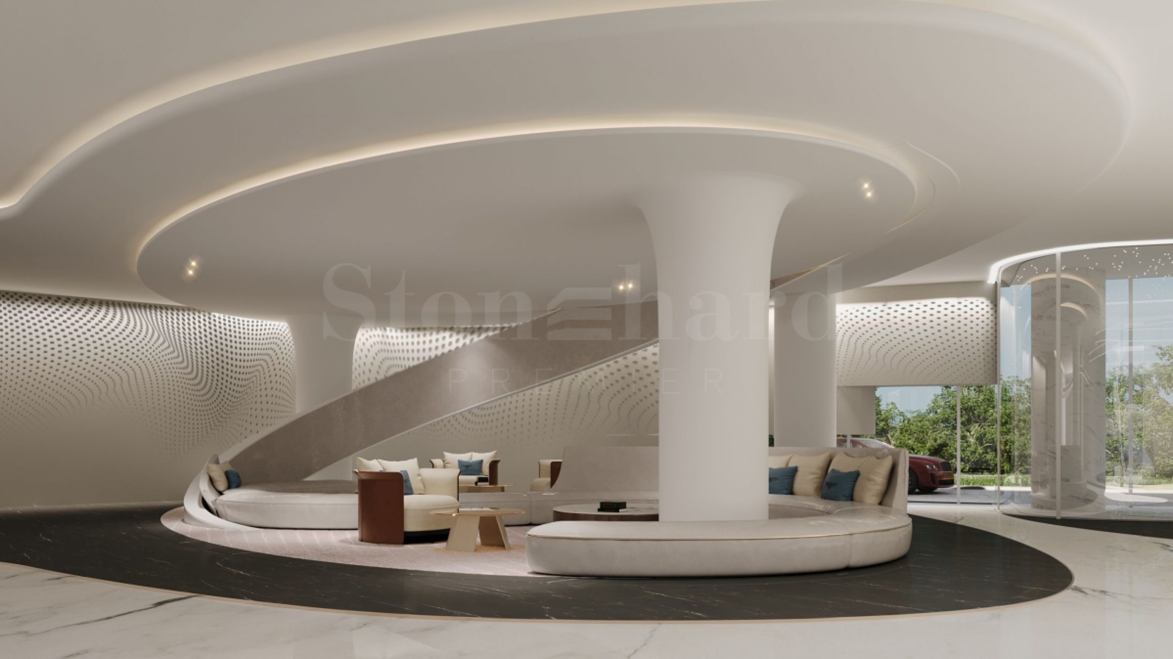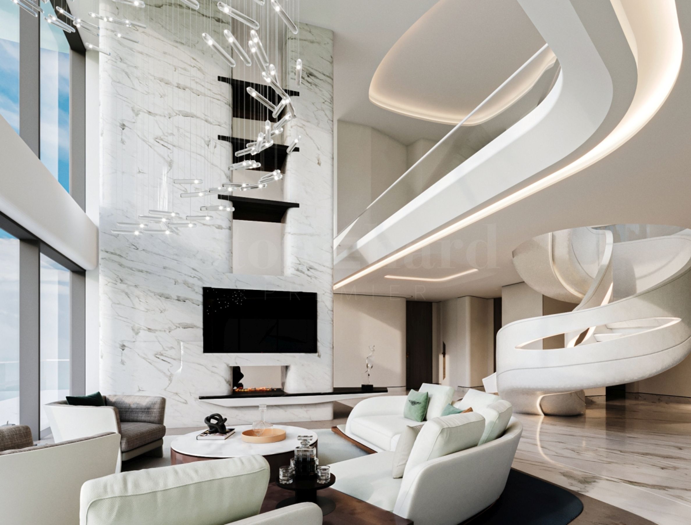 Exteriorul este impresionant, cu două turnuri înalte conectate printr-un pod plutitor, care include o piscină infinită la etajul 14. Acest design inovator oferă priveliști uluitoare asupra oceanului și le oferă rezidenților un sentiment ridicat de lux.