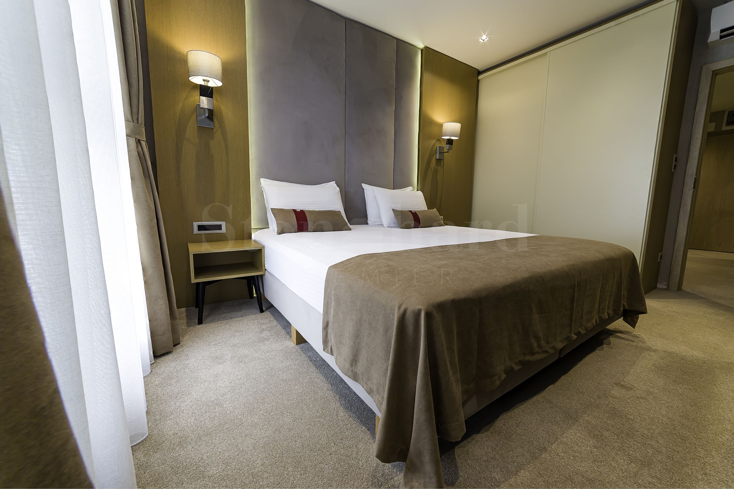 dressing separat cu spațiu pentru mașina de spălat, situat la același etaj lângă apartament – o soluție extrem de practică.Mobilierul este elegant, în tonuri moi, creând o atmosferă de confort și armonie. În fiecare încăpere pătrunde lumină naturală, ceea ce face apartamentul extrem de primitor.