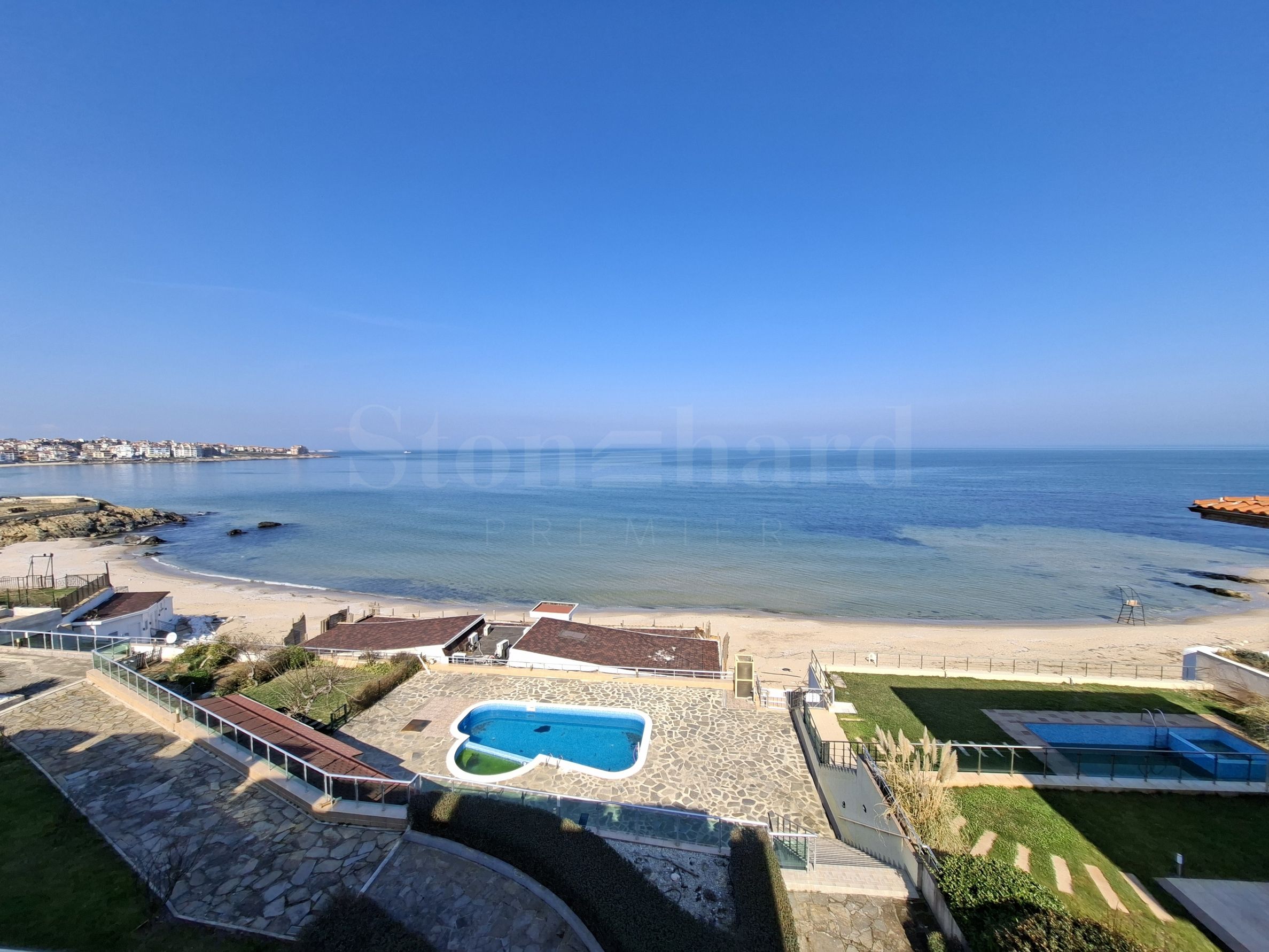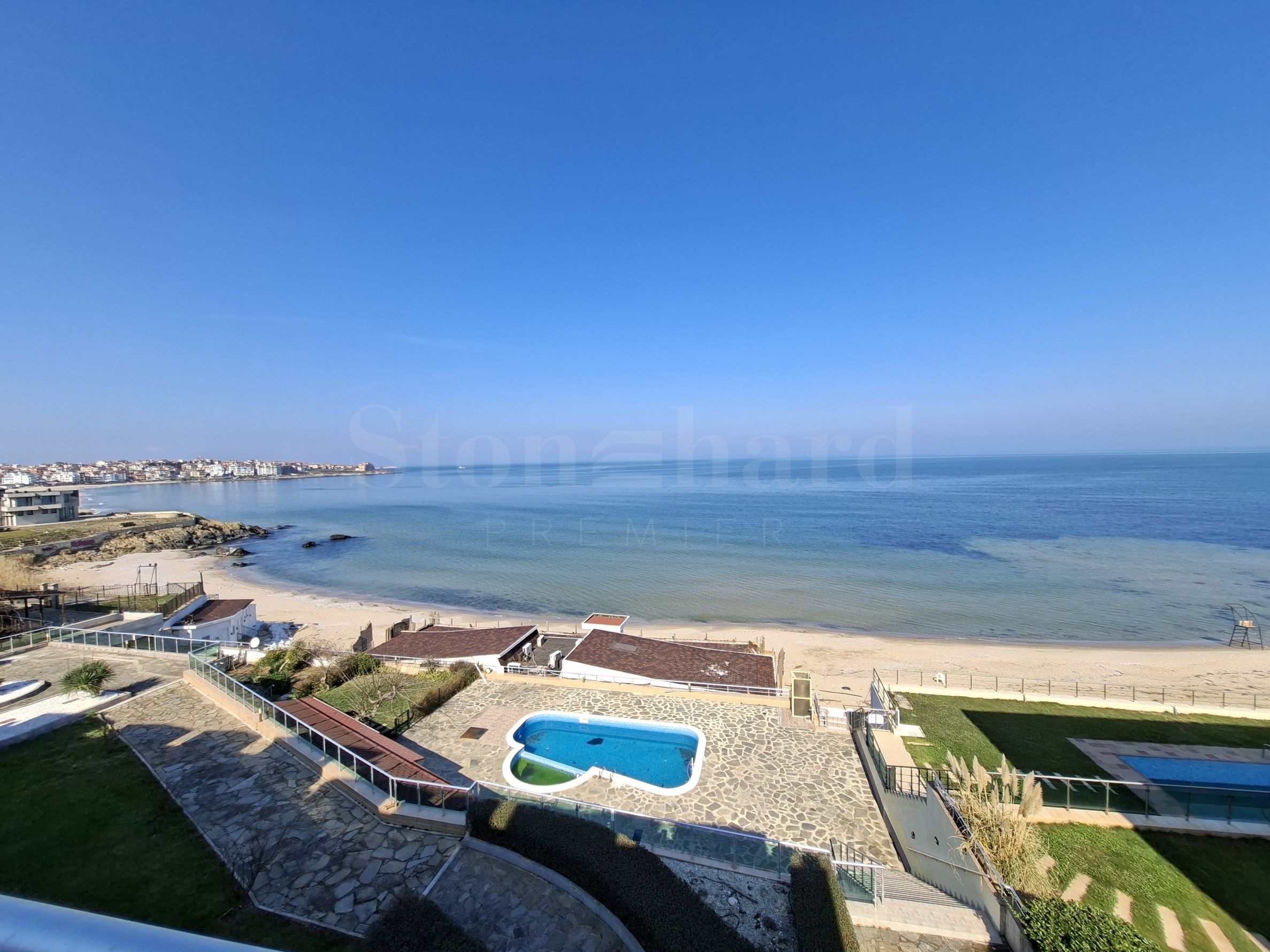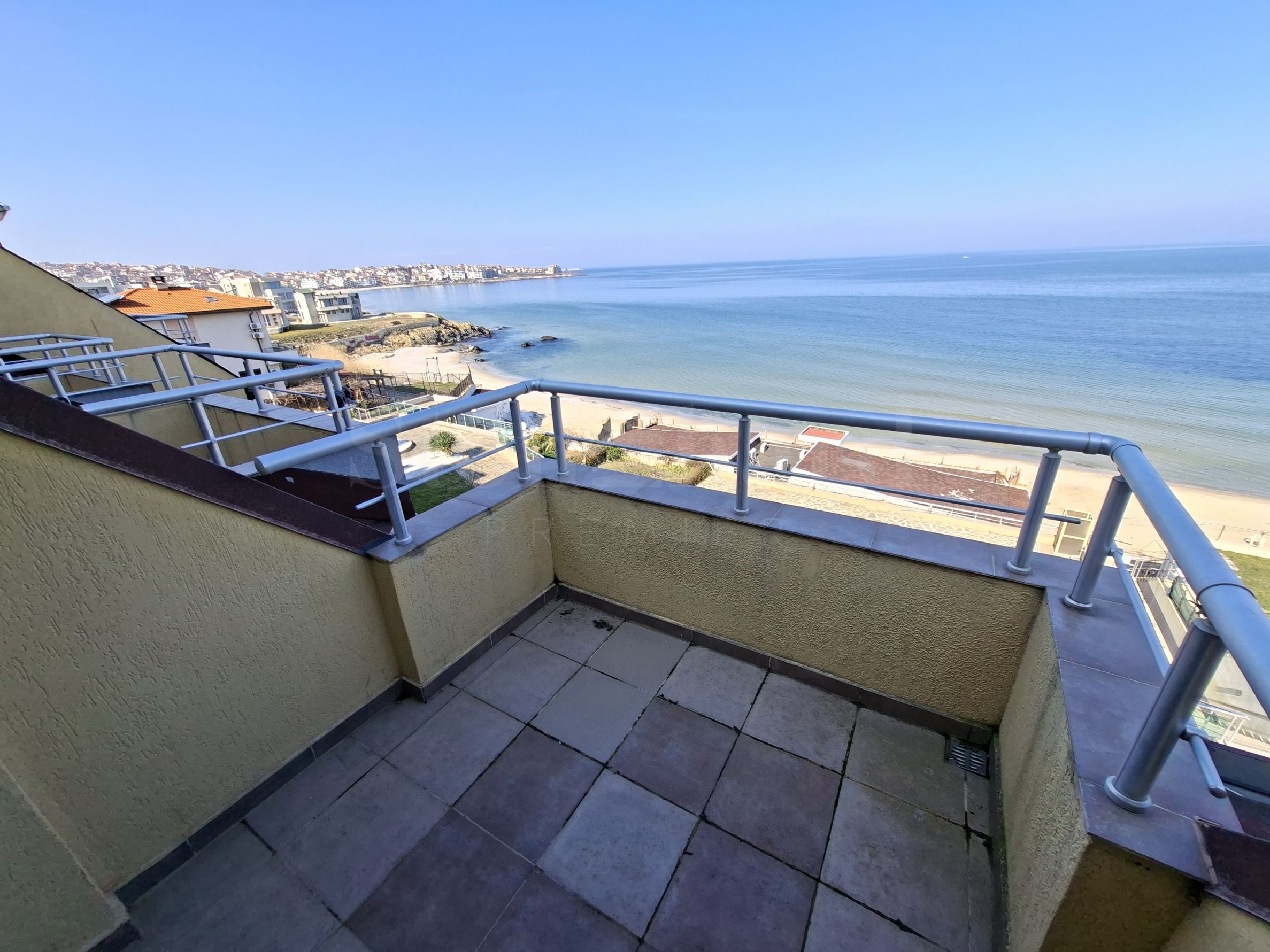 Proprietatea are o suprafață totală de 56,90 mp, situată la etajul 3 și oferă o vedere panoramică neobstrucționată către mare și plajă.