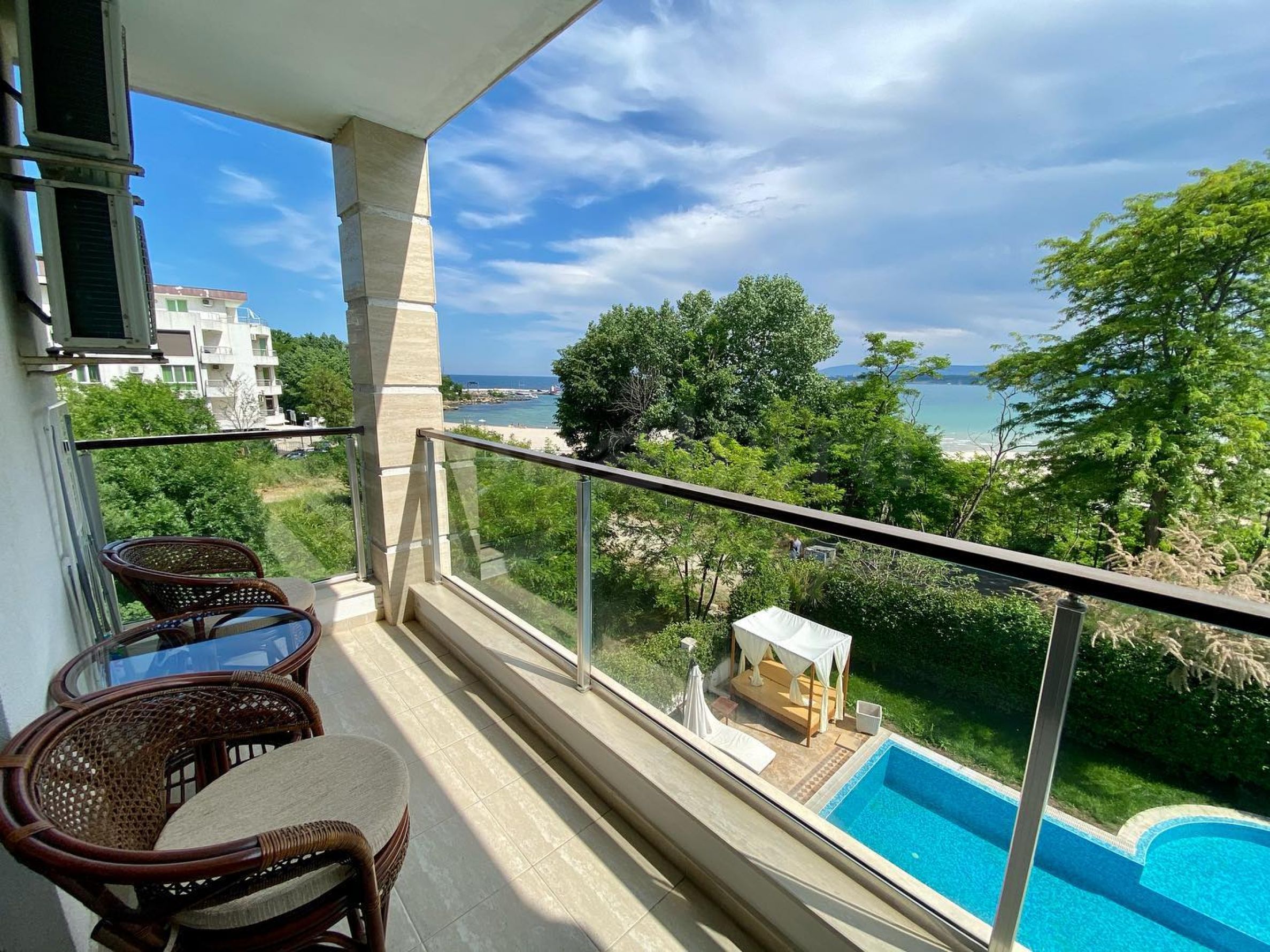 Complexul tip boutique este un complex cu acces direct la internet, format dintr-o clădire cu cinci etaje orientată spre sud, cu o piscină exterioară, o grădină frumoasă și o terasă însorită cu jacuzzi. Clădirea are doar 32 de apartamente cu suprafețe cuprinse între 60 mp și 160 mp - cu vedere panoramică la mare sau la oraș. Apartamentele au vedere spre întreaga plajă sudică, golful Dyavolska Reka, Kiten și Muntele Strandzha. Complexul este deservit de un lift modern și silențios, iar la nivelul subteran există 20 de locuri de parcare.