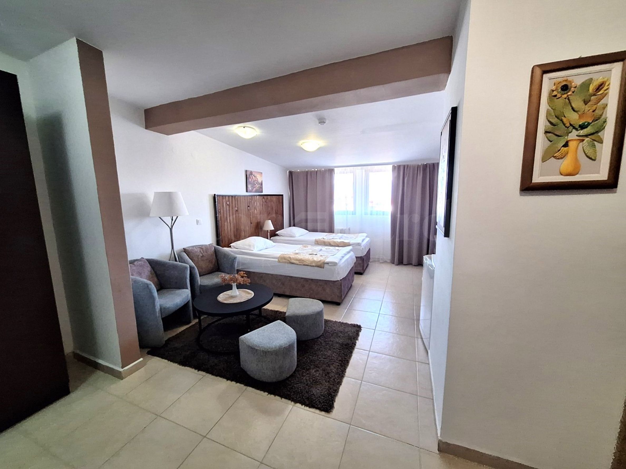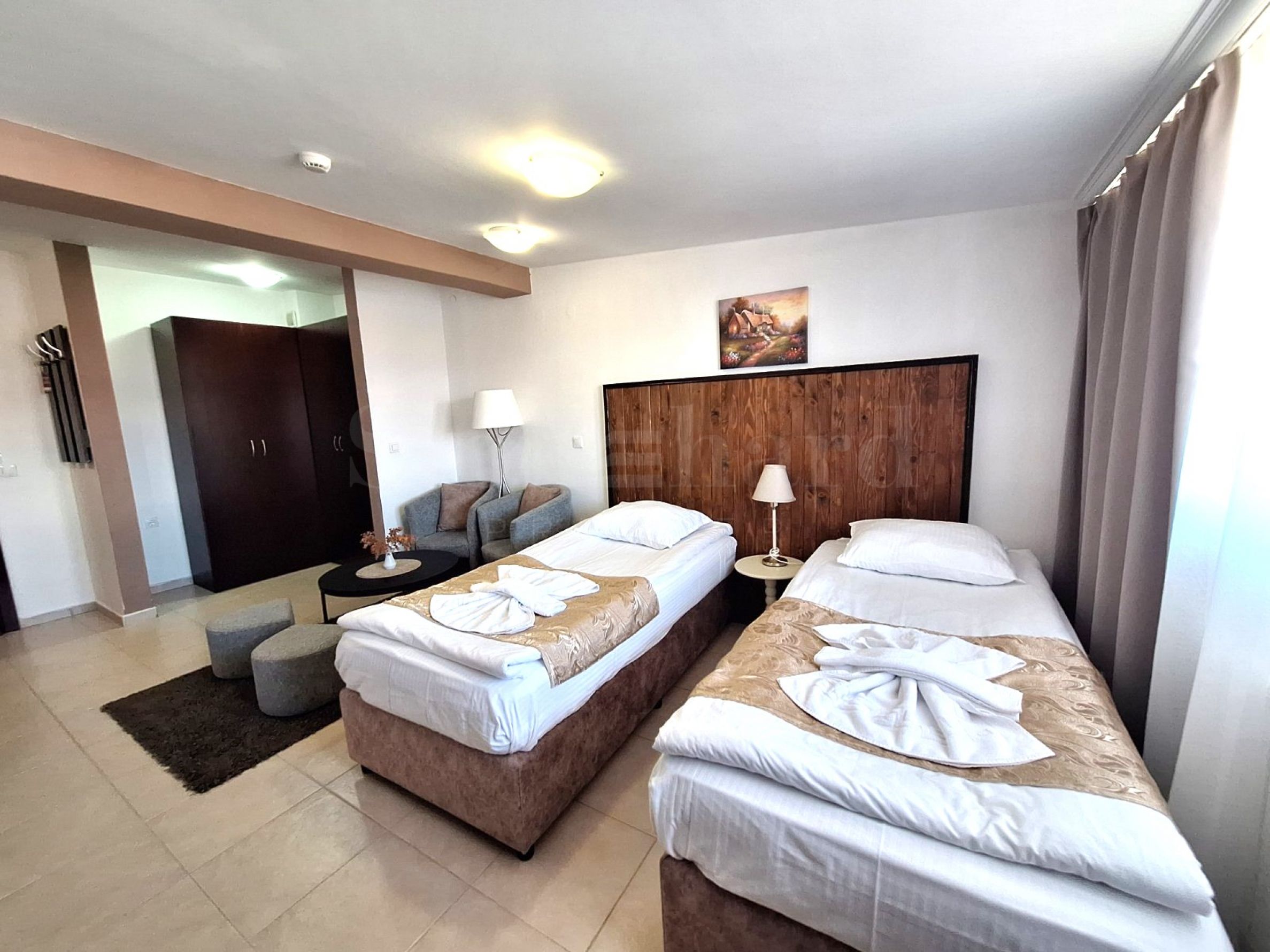 • Living mobilat cu două paturi single și dulap (fără chicinetă);