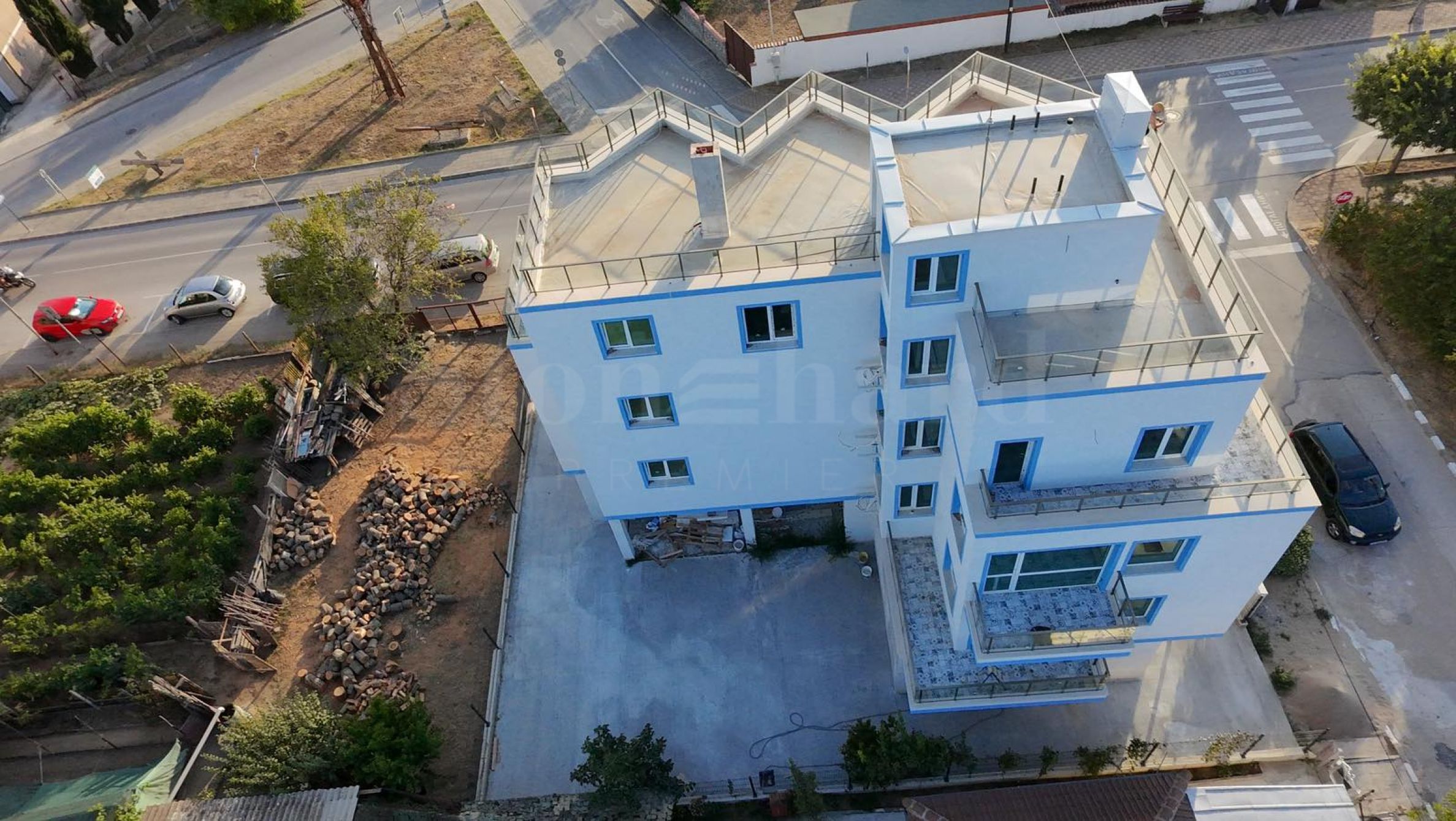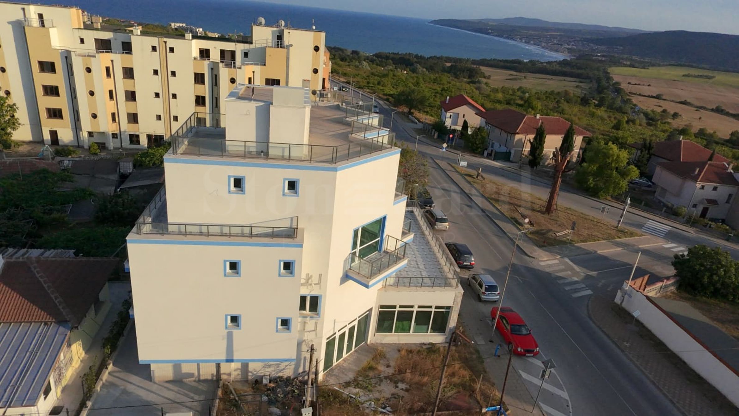 La etaj sunt câte două apartamente, iar fiecare apartament dispune de debara, terasă și vedere la mare.