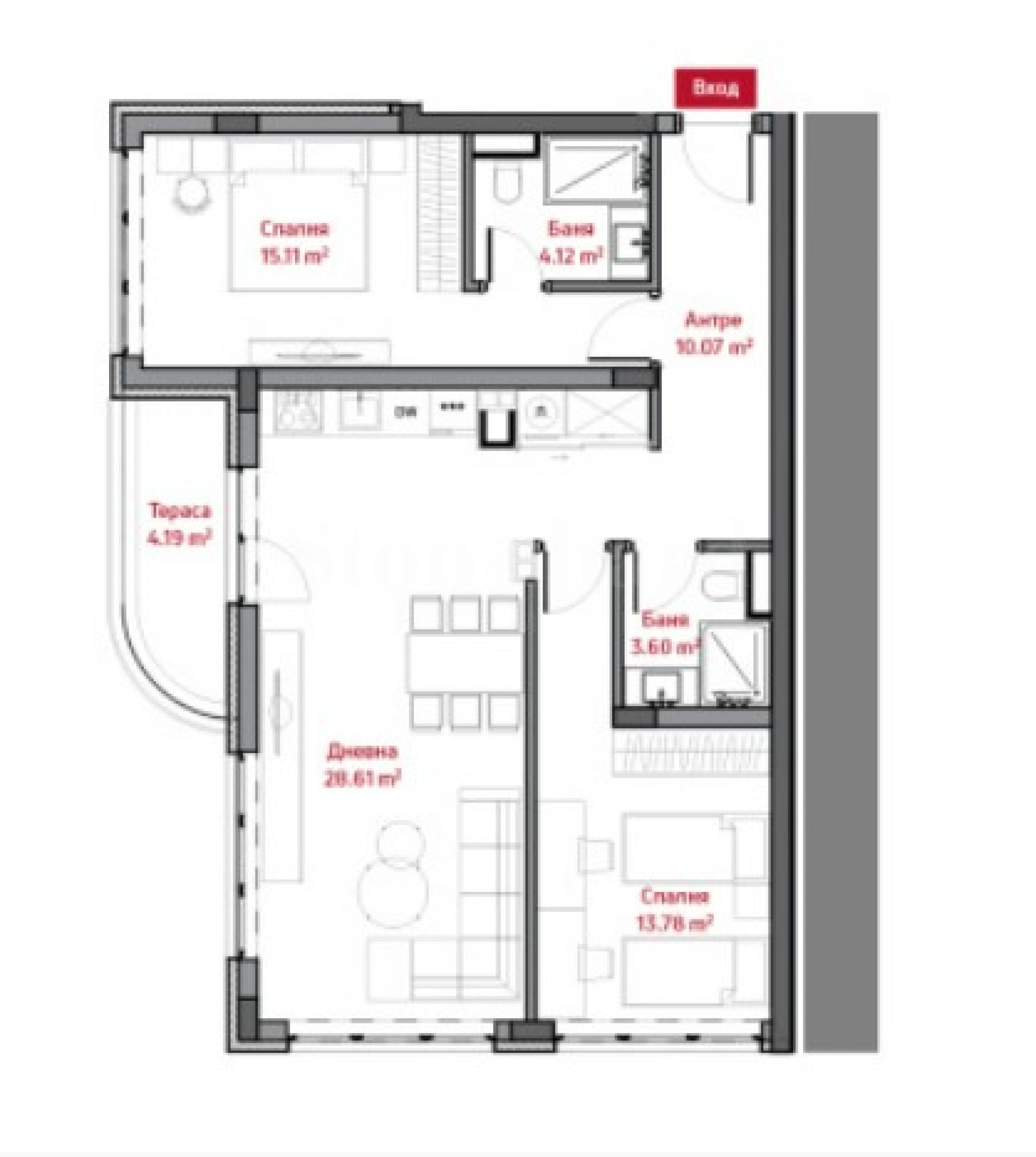 Apartament cu trei camere în complexul "Manastira" în cartierul "Simeonovo"
