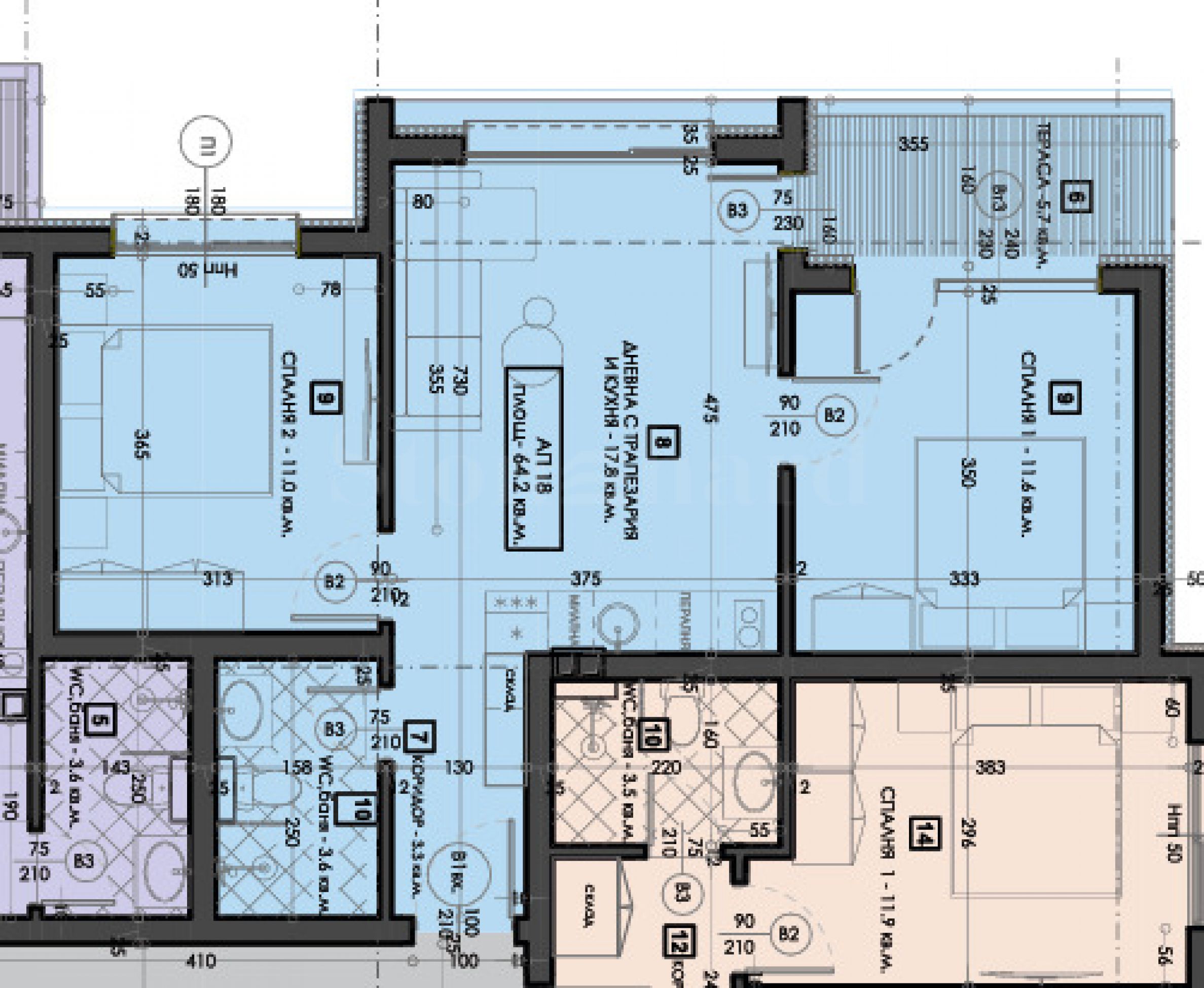 Tipuri de proprietăți din clădire/complex: Apartamente cu 3 camere
