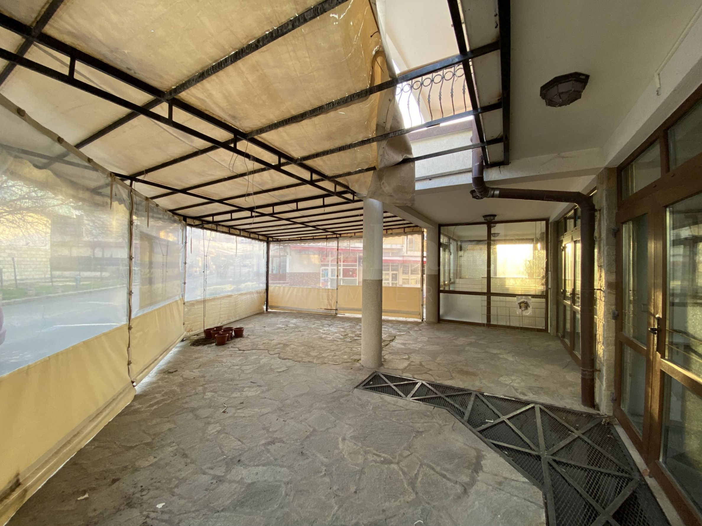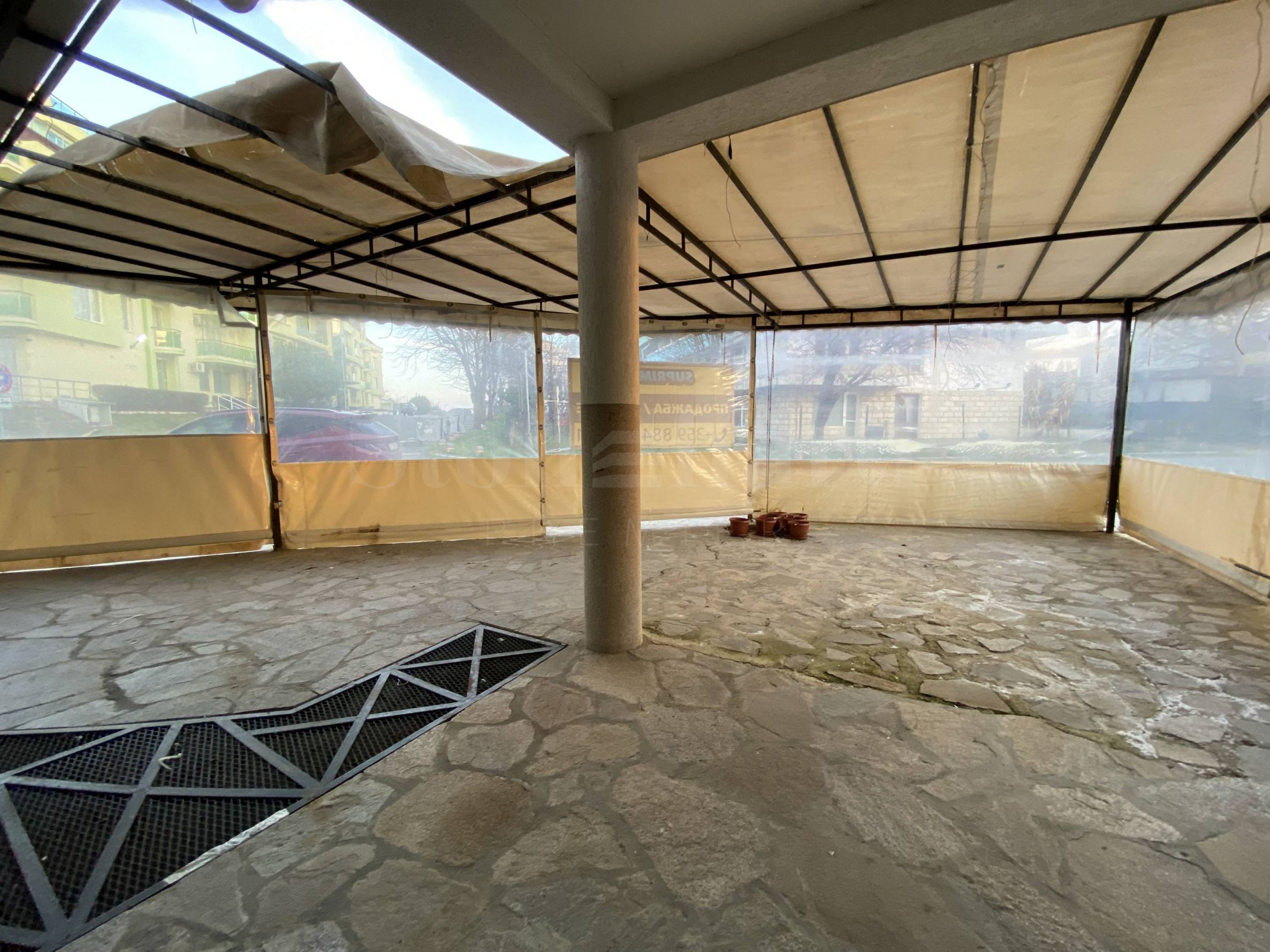 toaletă.În fața magazinului există un spațiu suplimentar cu un acoperiș construit și perdele antivânt montate.