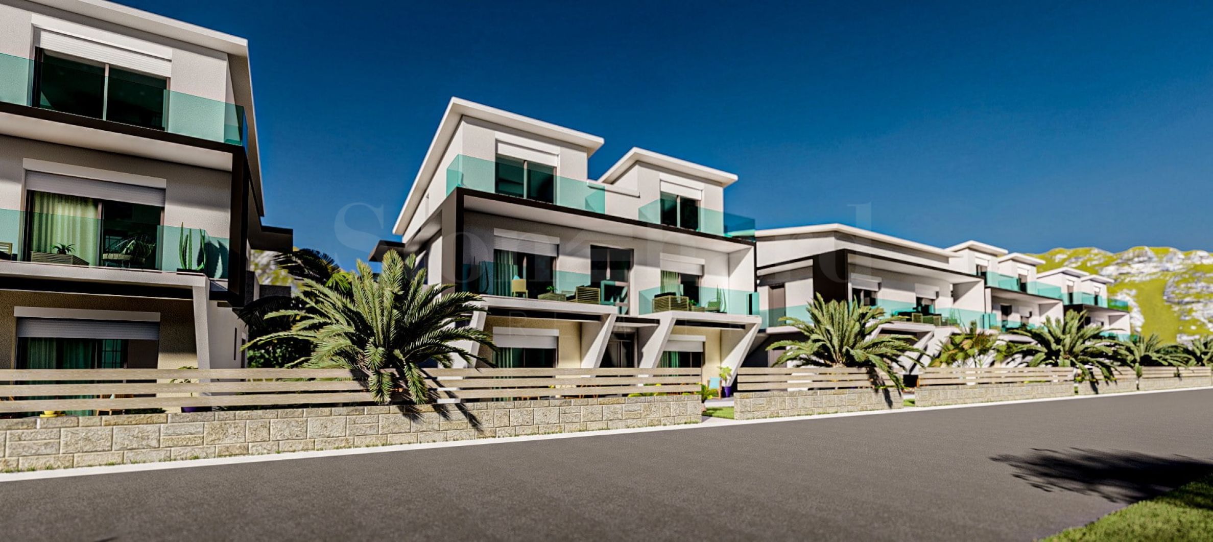 Complexul este alcătuit din cinci clădiri cu un exterior modern și linii curate, tipice construcțiilor noi. Clădirile sunt proiectate punând accent pe intimitate și confort, cu câte patru apartamente cu unul sau două dormitoare fiecare, iar în construcție sunt folosite materiale de înaltă calitate pentru a asigura siguranța rezidenților. Grădina complexului este amenajată cu grijă, cu plante frumoase, oferind răcoare și creând un mediu liniștit, ideal pentru relaxare.