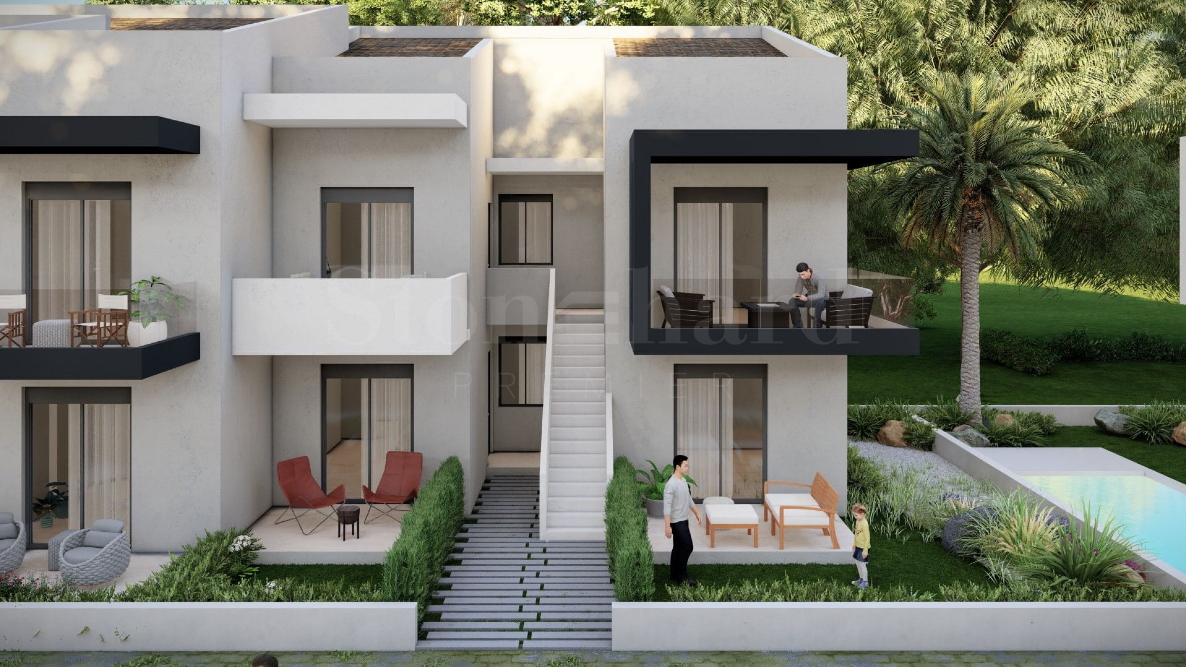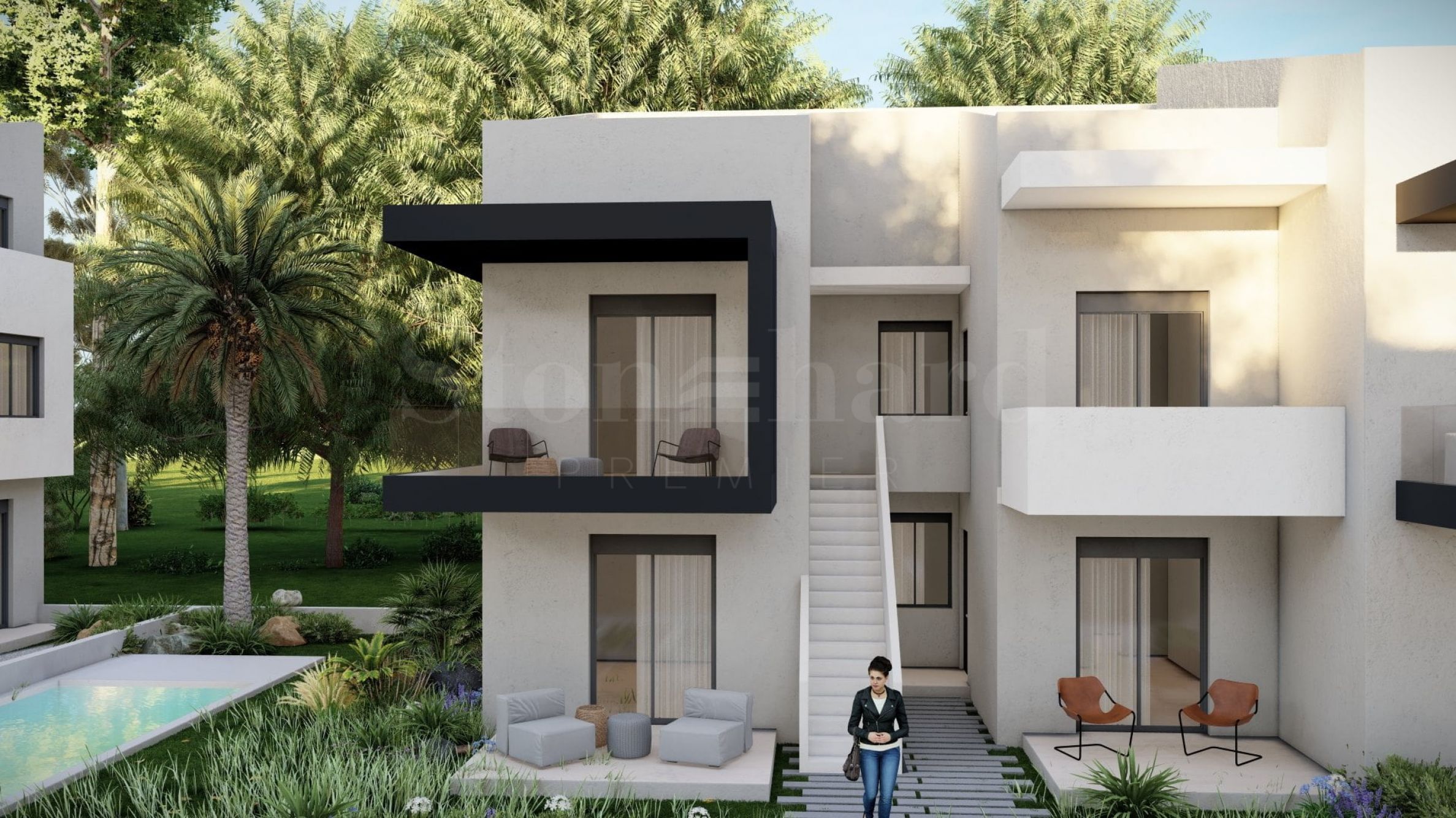 În frumoasele grădini dintre clădiri, există alei din piatră naturală care duc spre zone de relaxare, precum și spre piscine comune, care contribuie la senzația de răcoare și liniște și sunt un loc excelent pentru relaxare.