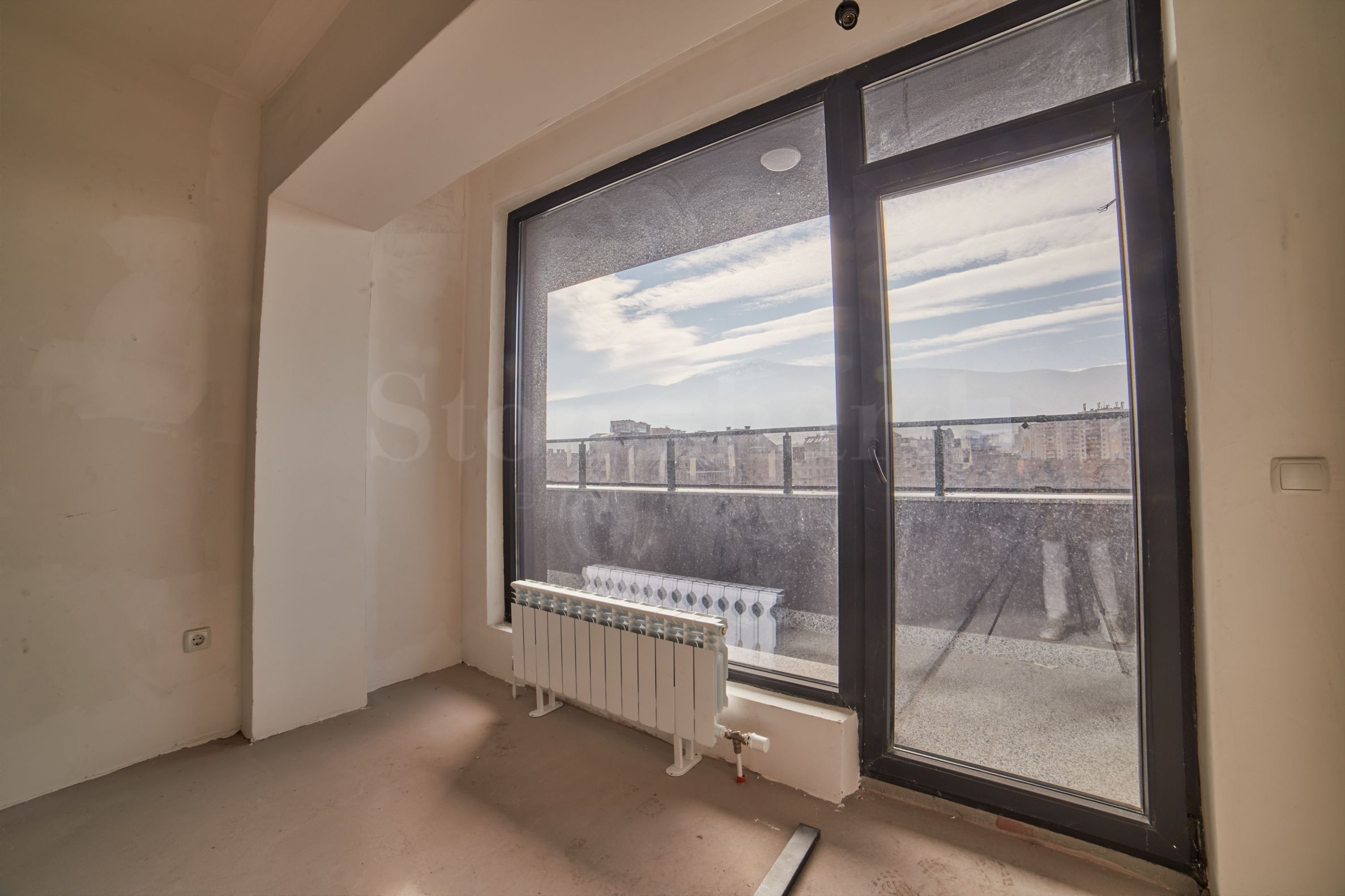 Clădirea are o structură monolit din beton armat și este compusă din trei intrări - A, B și V. Locuințele sunt în număr de 79 - 4 ateliere și 75 apartamente. Apartamentele cu două camere au aproximativ 70 mp, iar cele cu trei camere variază între 110 și 130 mp. Toate apartamentele au orientare sudică și vedere directă spre munte. Se vând atât la stadiul de glet și șapă, cât și finisate "la cheie" - (pardoseli, băi echipate, întrerupătoare și prize, pardoseli în hol, parchet laminat în dormitor și living, pereți vopsiți).