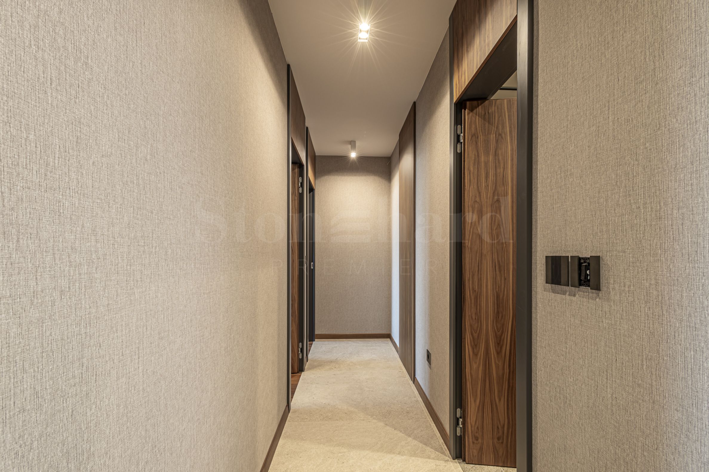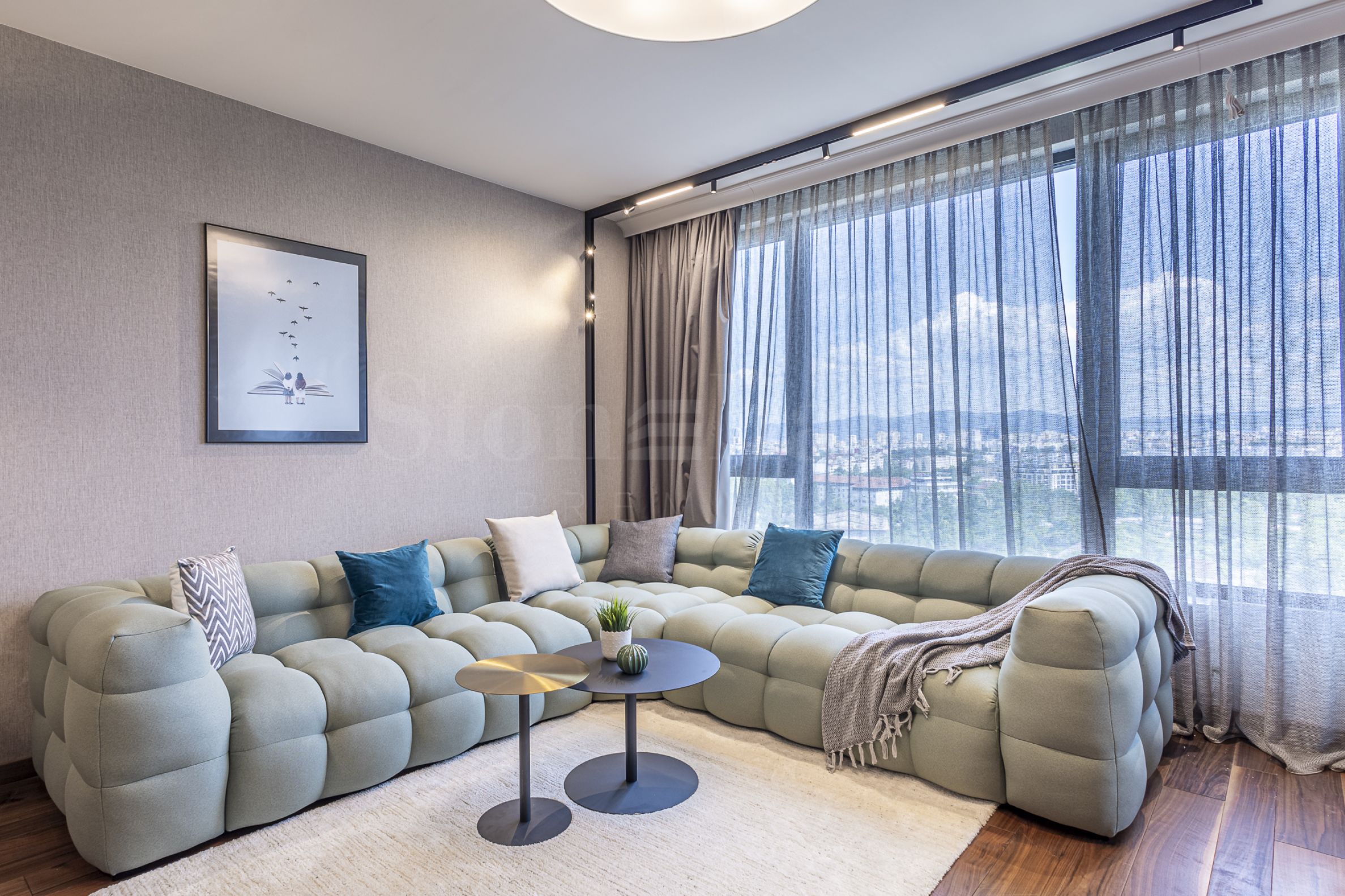 terasă.Locuința are un interior în stil modern, mobilată luxos cu mobilier de înaltă clasă de la un designer cunoscut și echipamente. Pardoselile sunt din parchet natural de înaltă calitate, iar încălzirea este prin CET și aer condiționat.