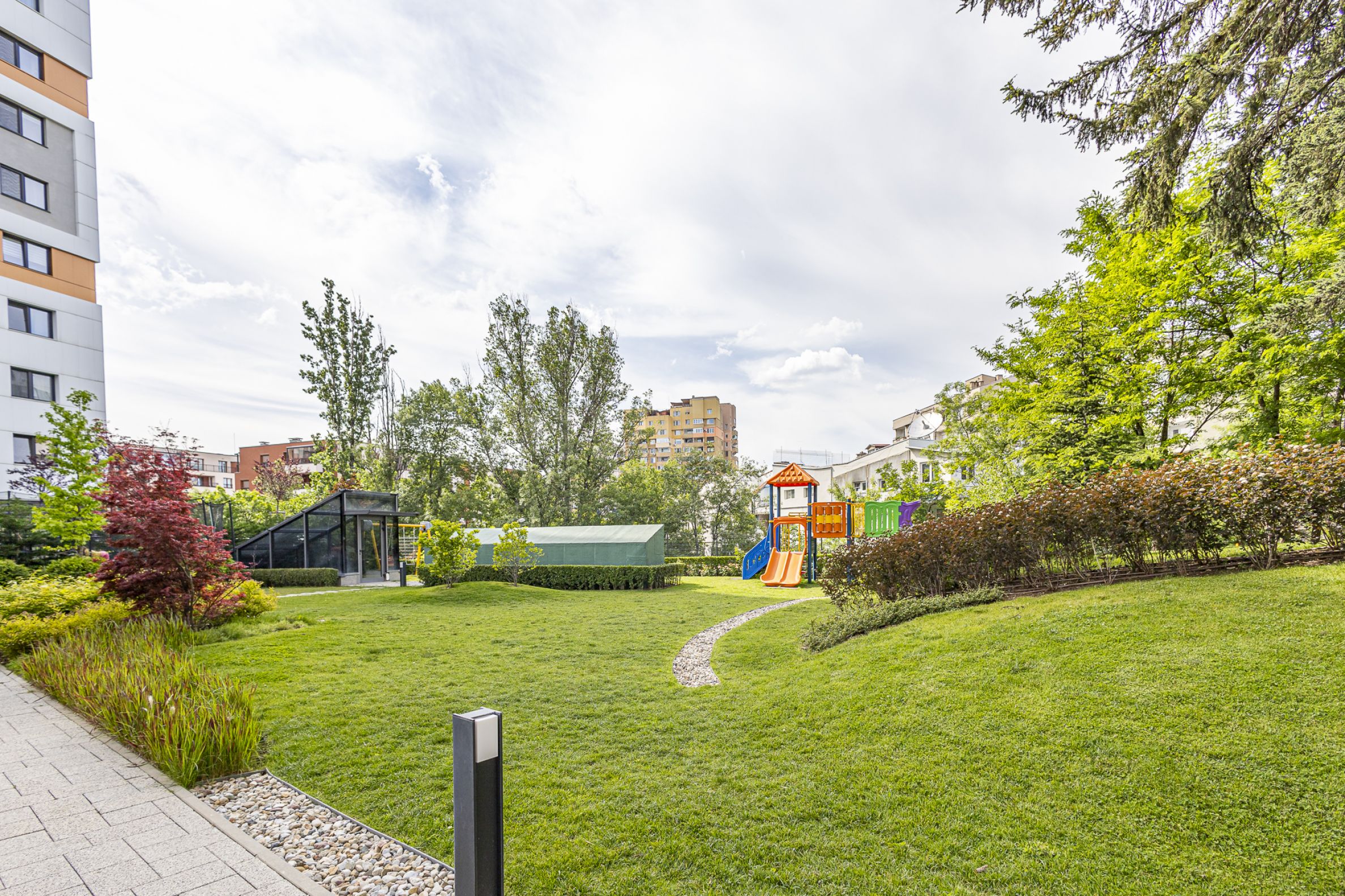 Clădirea este dată în exploatare (cu Act 16), cu părți comune reprezentative, precum și cu o frumoasă grădină interioară cu acces limitat, pază, supraveghere video și lift.