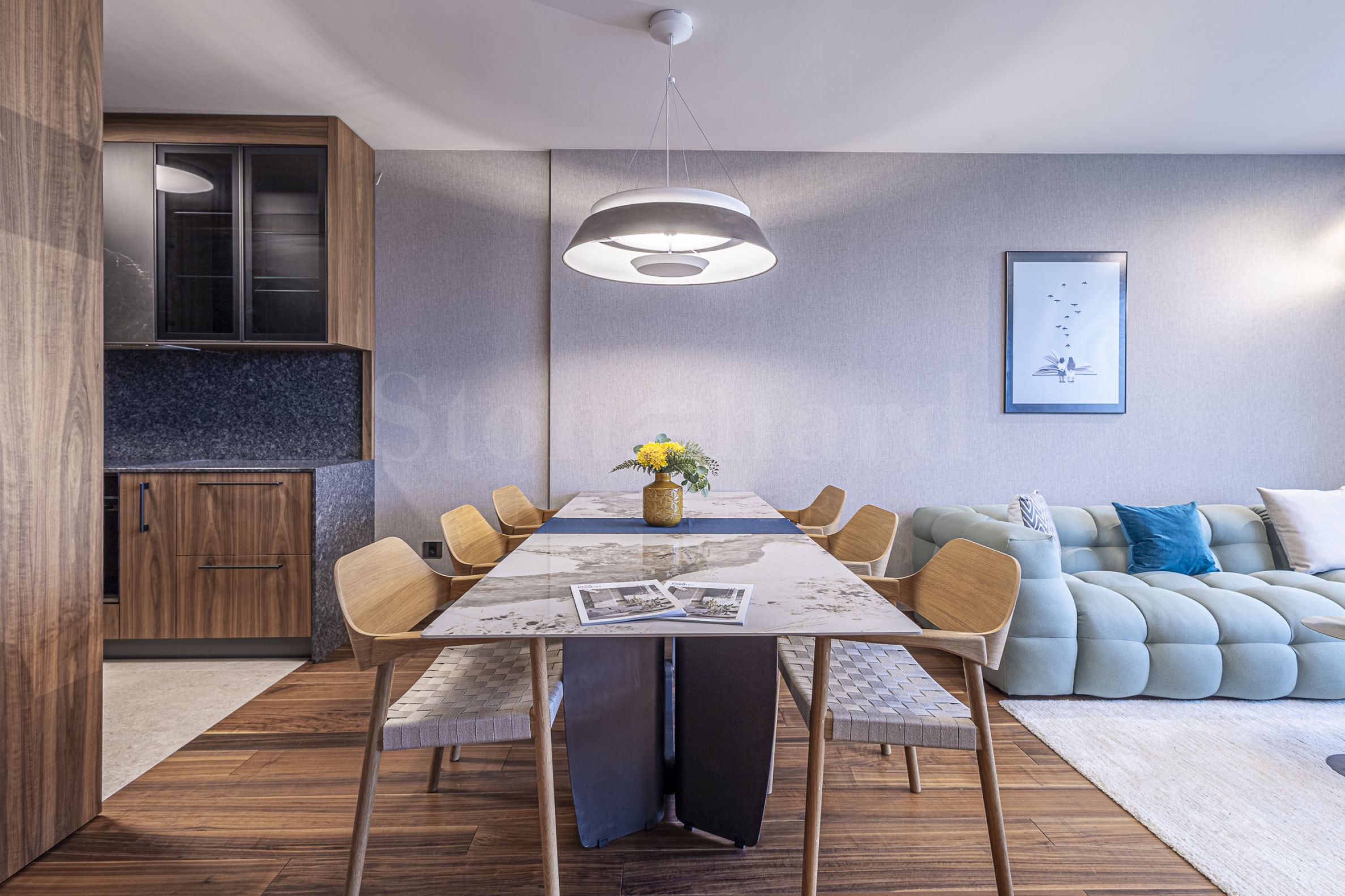 living spațios cu colț de bucătărie și sufragerie;