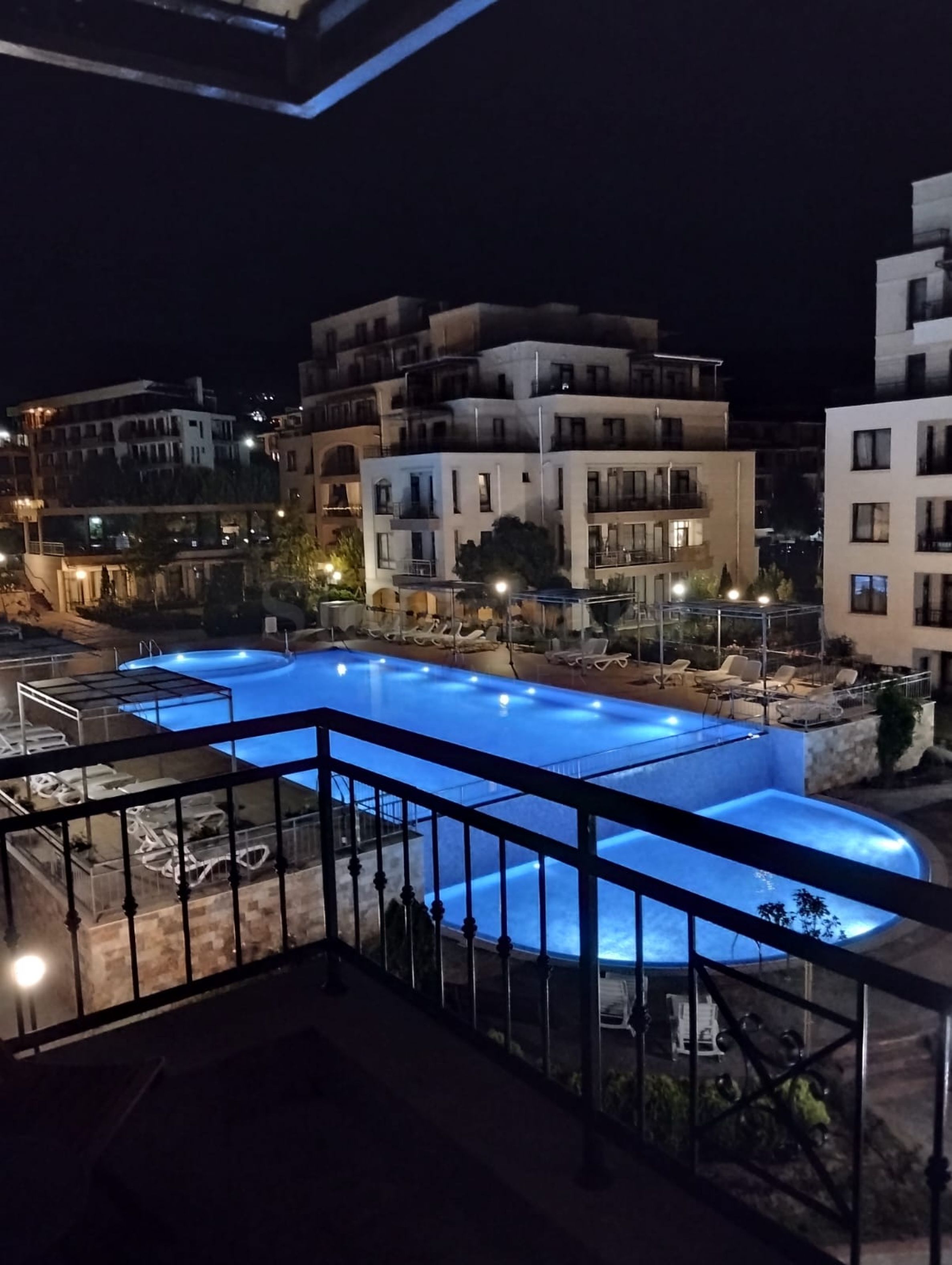 Complexul confortabil este format din două clădiri cu 6 etaje, situate una față în față, și două clădiri cu un singur etaj, poziționate de o parte și de alta a intrării principale. Două clădiri noi cu câte 6 etaje sunt în construcție, care vor fi paralele cu celelalte și împreună vor forma un cerc complet în jurul piscinei și grădinii complexului. Complexul dispune de o piscină cu secțiune pentru copii și o a doua piscină separată pentru copii, un loc de joacă și o recepție. Există un restaurant excelent și există locuri de parcare lângă clădire. Zona dispune de un supermarket mare, un centru SPA și de fitness, restaurante și alte facilități.