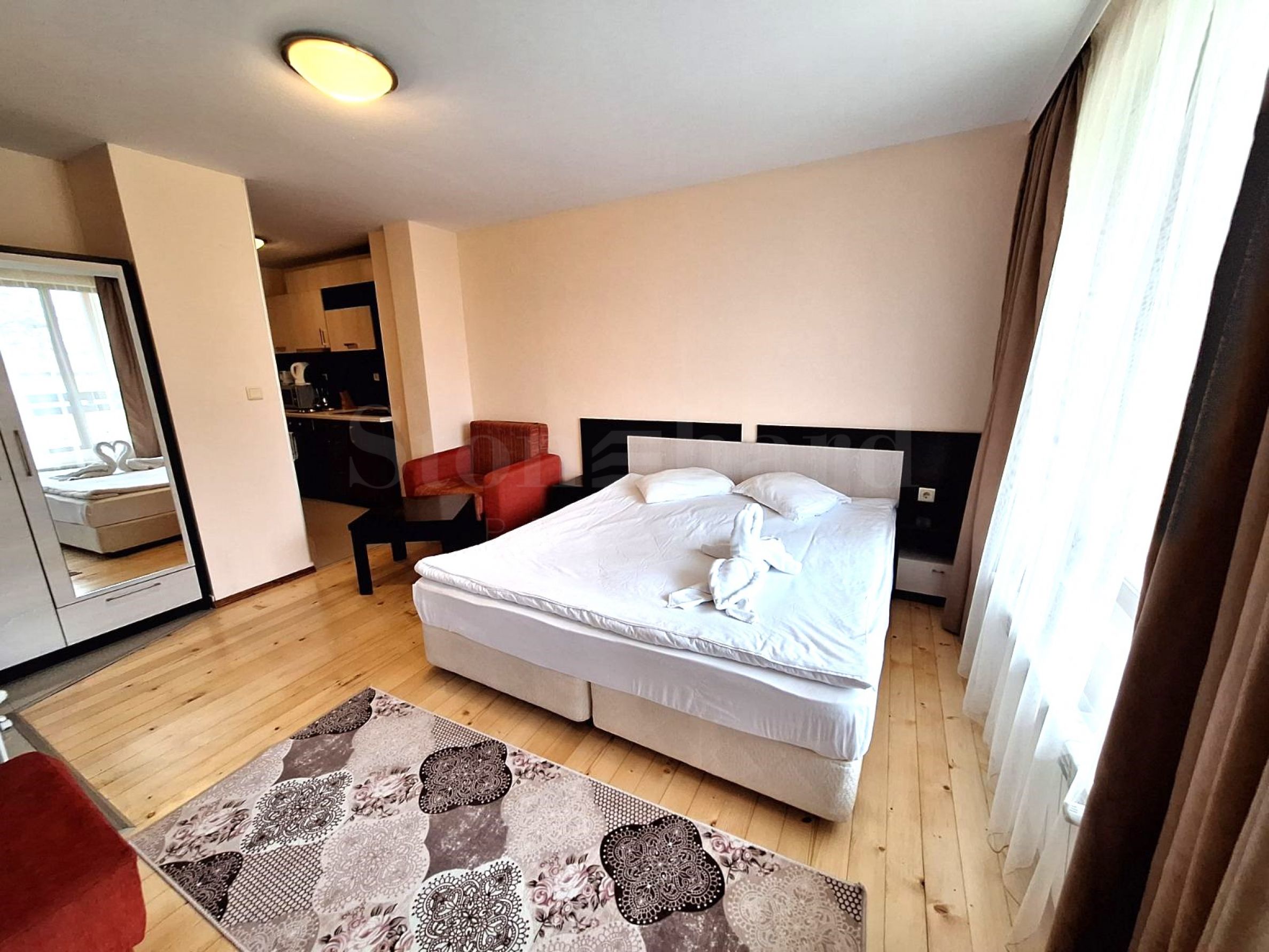 Studio complet mobilat cu balcon într-un complex deschis tot anul în Bansko