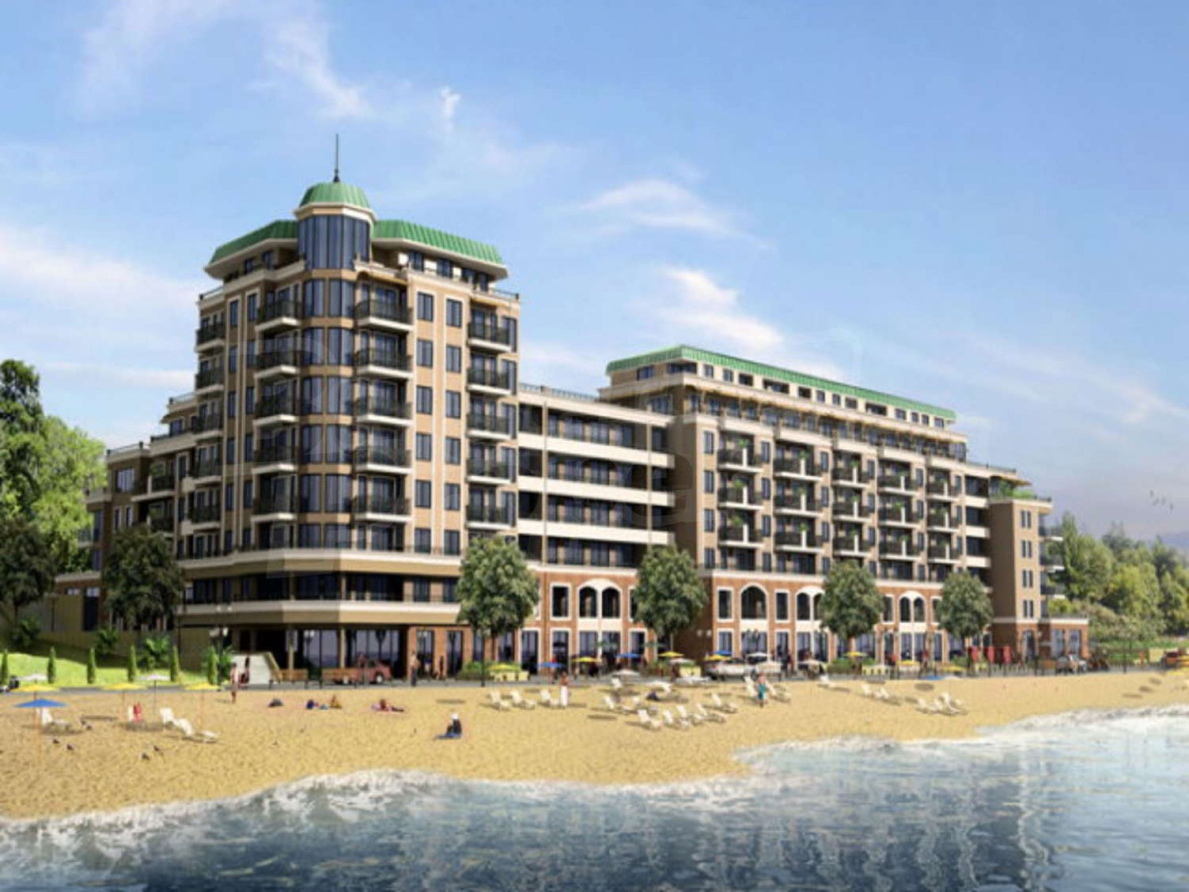 Pe prima linie, în imediata apropiere a restaurantelor, barurilor, magazinelor, cafenelelor și alte facilități. Plaja stațiunii are apă de mare extrem de curată, o fâșie lungă și lată de nisip și este una dintre preferatele oaspeților din Varna.
