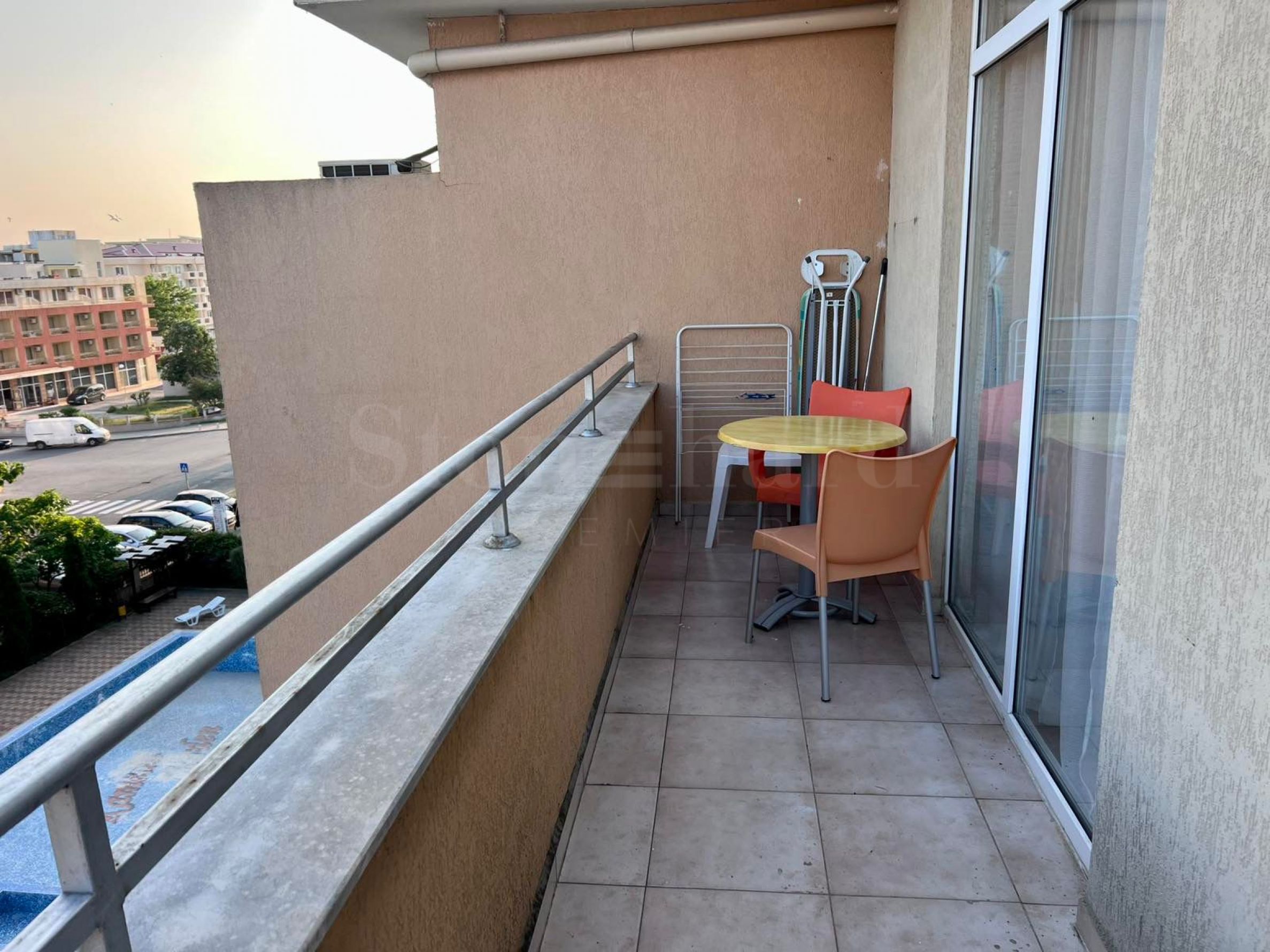 Studio mobilat cu vedere la piscină, aproape de plaja din Slănčev brâg