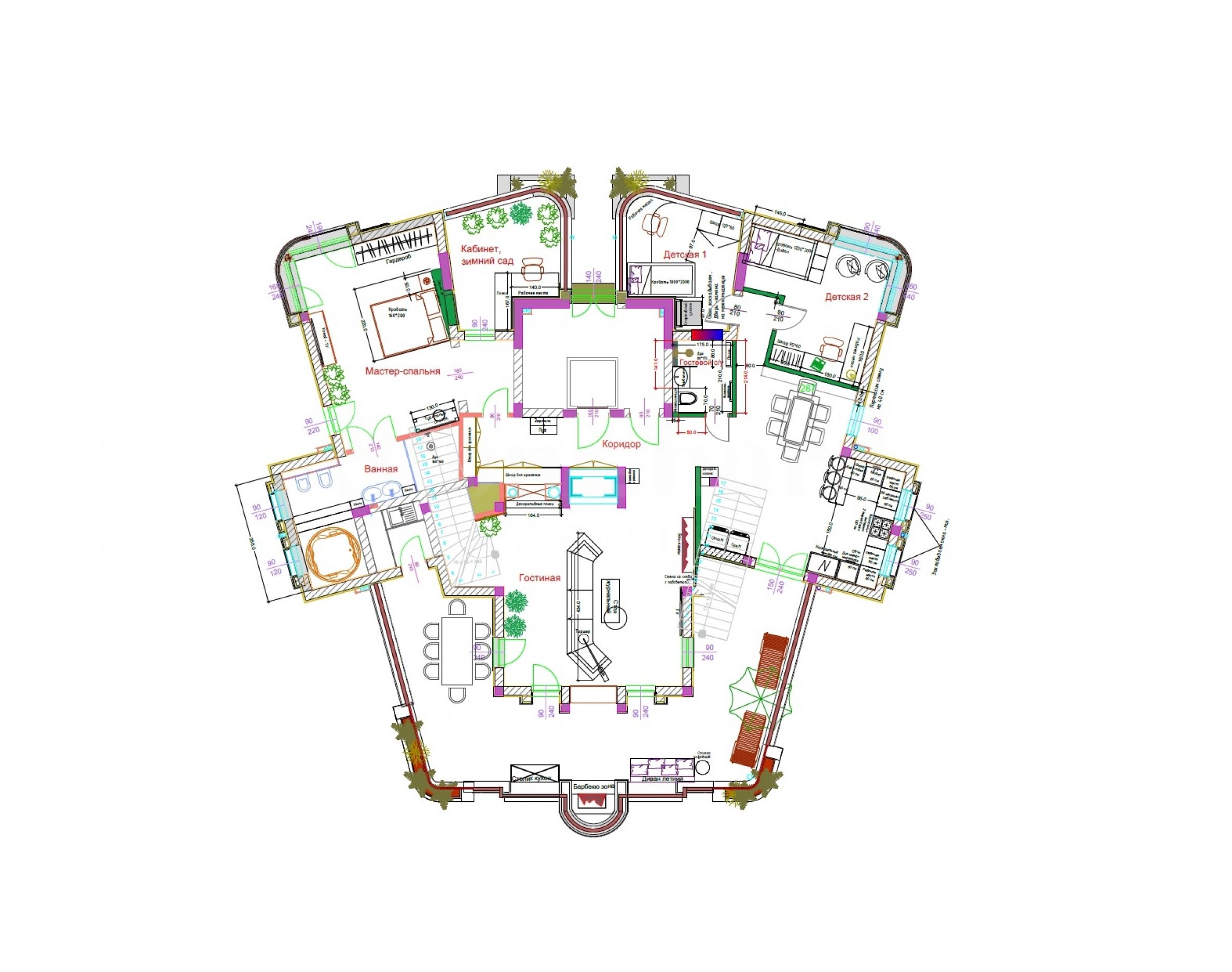 • zonă de zi luminoasă cu spații delimitate pentru relaxare și luat masa;